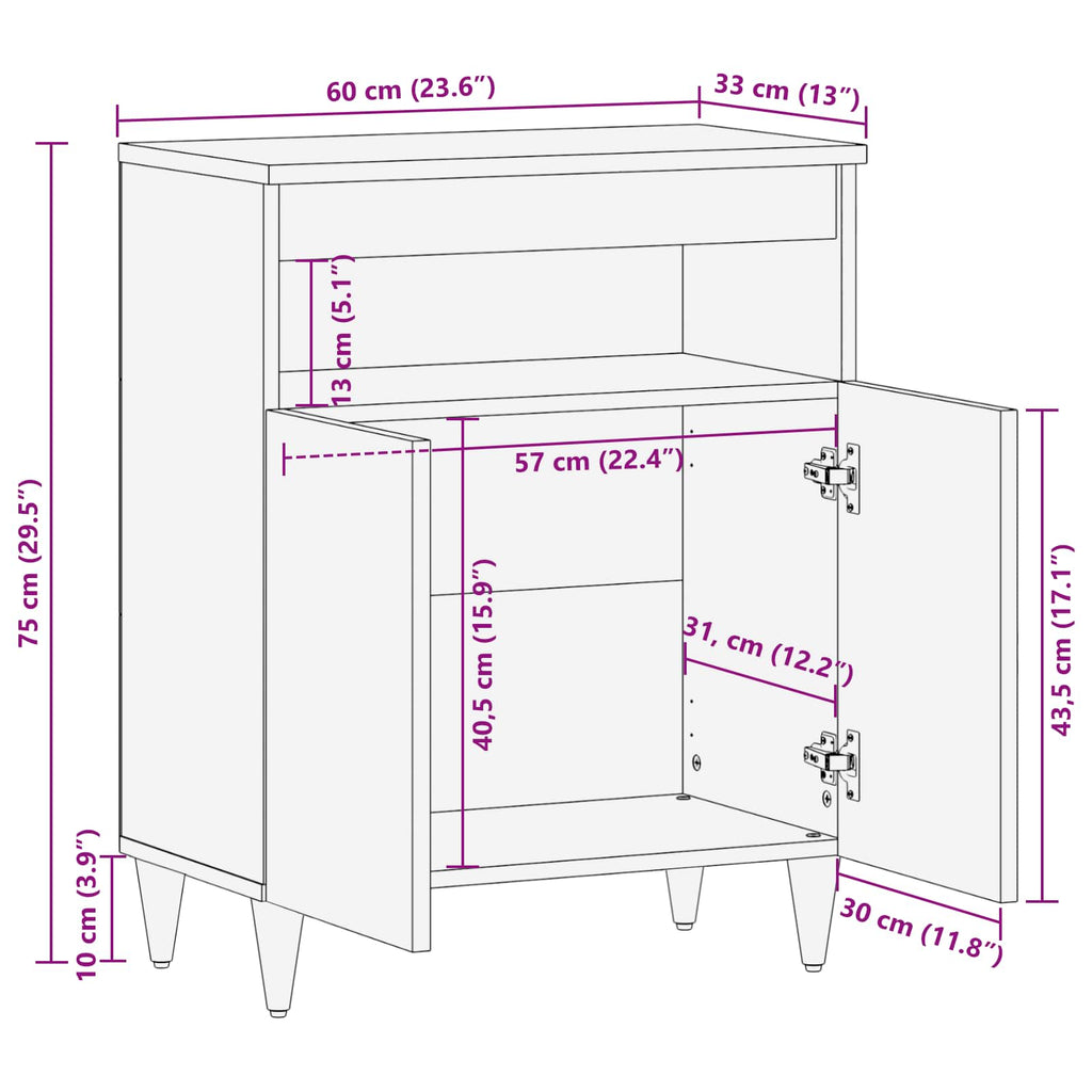 - Dimensions globales: 60 x 33,5 x 75 cm (L x l x H)