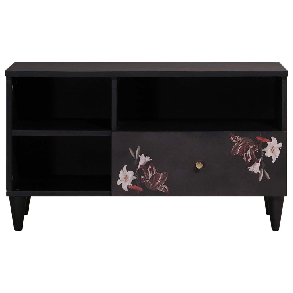 Ce cabinet pour médias élégant mixe parfaitement style et praticité, idéal pour les salons où l'apparence et la fonction se rejoignent. Son design étroit et moderne met en avant simplicité et efficacité, parfait pour des intérieurs contemporains. Avec sa finition colorée, il attire le regard tout en offrant assez de place pour ranger et afficher vos médias. Matériaux de qualité : Fait en bois de manguier massif et en bois d'ingénierie, ce meuble combine beauté et robustesse. C'est durable et ça apporte une touche chic à votre déco. Détails artistiques : Avec un motif floral unique, ce cabinet apporte une touche déco qui enrichit l'aspect général de votre salon. La gravure rend le cabinet encore plus beau, en faisant un vrai centre d'intérêt. Design pratique : Avec ses poignées en laiton modernes et une porte de rangement, il mixe esthétique et fonctionnalité. Sa conception vous permet d'accéder facilement à vos médias tout en cachant bien les câbles et accessoires. Ajustement parfait : Dimensions de 80 x 33,5 x 46 cm, ce meuble offre du rangement compact mais efficace, parfait pour les petits logements ou comme ajout stylé dans des pièces plus grandes. Ses dimensions optimisées permettent une intégration facile partout. Entretien facile : Gardez-le toujours comme neuf en le nettoyant avec un chiffon sec. Sa structure ne demande pas beaucoup de soin, vous garantissant un meuble toujours beau sans trop d'effort.