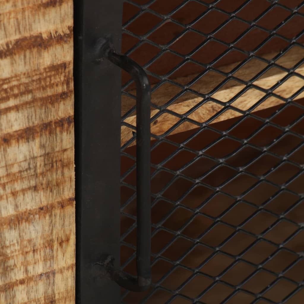 Ce buffet en bois de style industriel sera un supplément décoratif ainsi que pratique à votre décoration. L'armoire de rangement est fabriquée à la main en acier et en bois de manguier brut massif, ce qui la rend robuste et stable. Le savoir-faire artisanal et les belles veines du bois font que chaque meuble soit unique et légèrement différent l'un de l'autre. De plus, cette armoire latérale dispose d'un grand espace de rangement pour garder vos objets importants organisés et à portée de main. Remarque importante : les couleurs et les grains peuvent varier d'une pièce à l'autre, rendant chaque pièce unique. La livraison est aléatoire, ce qui garantit l'exclusivité et l'individualité de votre produit.