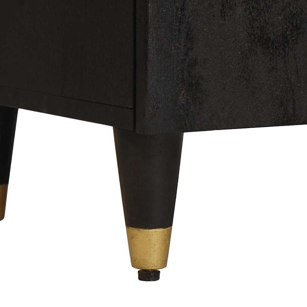 Ce buffet chic apporte à la fois style et praticité à votre salon ou salle à manger. Avec son look moderne, ses lignes épurées et ses accents dorés font un effet saisissant, tandis que le bois de manguier massif assure sa durabilité. Son design simple et fonctionnel le rend parfait pour ceux qui cherchent un meuble élégant avec beaucoup d’espace de rangement. Matériaux solides : Fait en bois de manguier massif de qualité, ce buffet est durable et ajoute une touche naturelle à votre intérieur. Sa robustesse en fait un choix sûr pour un usage régulier, et son joli grain apporte une note rustique. Accents dorés stylés : Avec des motifs dorés sur son extérieur, il insuffle du luxe chez vous. Ces détails sont soulignés par la quincaillerie en laiton brillant, qui met en avant son design moderne. Composants en laiton pratiques : Avec des boutons en laiton raffinés et des pieds en laiton solides, ce buffet allie esthétique et fonctionnalité. Les éléments en laiton sont faits pour durer, ajoutant à la longévité de votre meuble. Design de porte pratique : Grâce à ses portes à charnières, le buffet vous offre un accès facile au rangement, vous permettant d'organiser vos affaires sans souci. La porte s'ouvre et se ferme doucement, conservant l'aspect épuré du meuble. Facile à entretenir : Pour préserver son éclat, un simple coup de chiffon sec suffit. Cela permet de garder le buffet impeccable avec peu d’efforts.