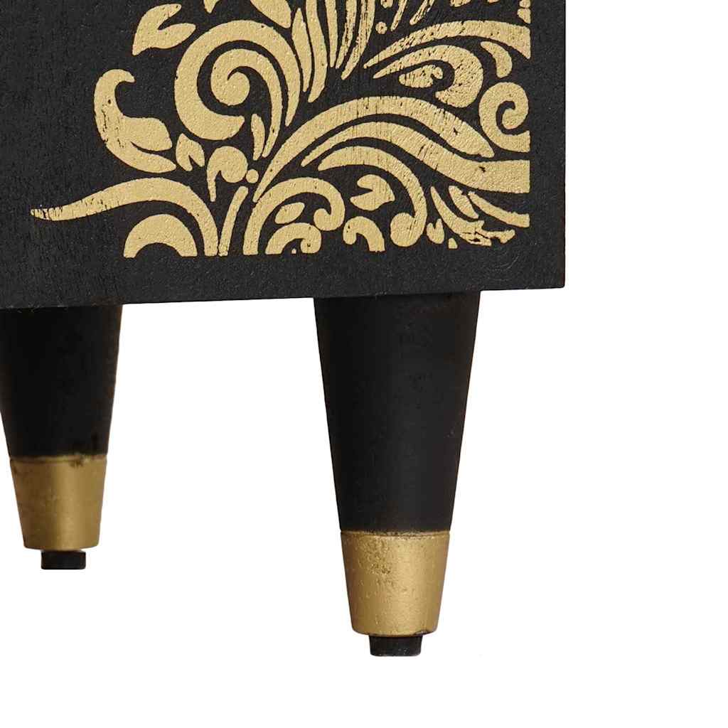 Ce buffet moderne pour salle de bain change complètement l'allure de n'importe quel salon. Avec son design épuré et pratique, il apporte une élégance décontractée. Sa forme rectangulaire s'harmonise bien dans les espaces modernes et offre beaucoup de rangement pour les essentiels quotidiens et la déco. Idéal, il entre facilement dans des endroits qui demandent à la fois du style et un gain de place. Matériaux de qualité : Ce buffet en bois de manguier massif et en bois d'ingénierie assure durabilité et esthétique. Le manguier est connu pour ses jolis motifs et son grain dense. Le bois d'ingénierie offre une bonne résistance. Ensemble, ils créent un meuble solide qui dure dans le temps. Design stylé : Avec son impression dorée, ce buffet a une allure glamour qui attire le regard. Ce motif complexe rend le meuble chic, un véritable objet d'art. Que ce soit dans le salon ou la chambre, il dégage luxe et sophistication. Composants solides : Avec des poignées et des pieds en laiton, le buffet est stable et facile à utiliser. Le laiton apporte une touche de luxe, tout en soutenant la structure du meuble. Les pieds cylindriques offrent un bon support pour n'importe quel poids. Porte pratique : Les portes affleurantes sont faciles à ouvrir et maintiennent une surface lisse, ce qui va bien avec les styles modernes. Les lignes nettes et la simplicité des portes mettent en avant le design du buffet, le rendant adaptable à différents intérieurs. Entretien : Pour garder votre buffet beau, il suffit de le nettoyer avec un chiffon sec de temps en temps. Cela garantit un éclat durable et préserve son apparence au fil des ans, en faisant un ajout sans tracas dans un foyer moderne.