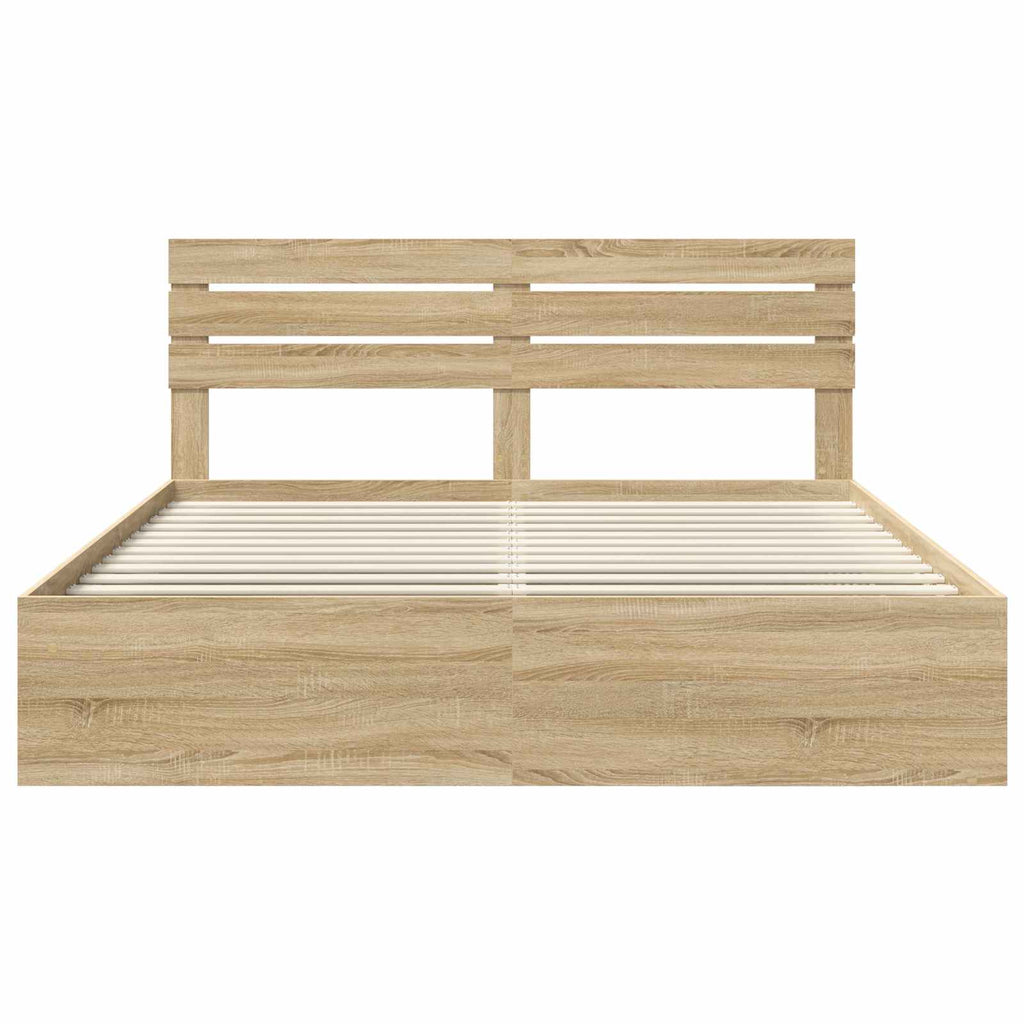 Ce cadre de lit moderne combine un design simple et stylé, apportant une touche nette et épurée à n'importe quelle chambre. Avec ses lignes claires, il est parfait pour ceux qui veulent un style minimaliste dans leur espace de sommeil. Bien conçu, il soutient le matelas, prolongeant sa durée de vie et fournissant une base solide pour un sommeil tranquille. Que ce soit pour ta chambre principale ou celle d'un ami, ce cadre apporte élégance et praticité. Cadre en bois d'ingénierie et de pin Ce cadre de lit est fait d'une combinaison de bois d'ingénierie et de pin massif, garantissant une structure robuste et fiable. Le bois d'ingénierie assure une stabilité optimale et le pin ajoute une touche de beauté naturelle. Ensemble, ces matériaux garantissent une durabilité et un look élégant qui rehaussent la déco de ta chambre. Cela contribue à une expérience de sommeil confortable. Tête de lit incluse Il est livré avec une tête de lit en pin massif, ajoutant à la fois du style et de l'usage pratique. C'est un bon soutien pour ceux qui aiment lire ou regarder la télé au lit. Le design de cette tête de lit complète le style moderne du cadre, rendant l'ensemble plus joli. Type de cadre à lattes Ce cadre à lattes fixe est fait de matériaux solides, offrant un support fiable pour ton matelas. Contrairement aux lattes flexibles, ce cadre rigide augmente la stabilité, réduisant les mouvements pour que tu restes dans une position confortable. Surfaces faciles à nettoyer Les surfaces sont conçues pour être faciles à entretenir. Un coup de chiffon humide suffit pour garder le lit propre, garantissant hygiène et facilité d'entretien pour une meilleure longévité. Assemblage recommandé Ce cadre de lit nécessite qu'il soit monté par deux personnes, ce qui peut être une activité sympa pour les couples ou les colocataires. Avec juste un tournevis, mettre en place ton nouveau cadre stylé est super simple.