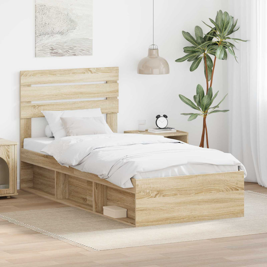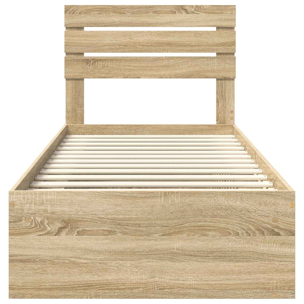 Ce cadre de lit moderne combine un design simple et stylé, apportant une touche nette et épurée à n'importe quelle chambre. Avec ses lignes claires, il est parfait pour ceux qui veulent un style minimaliste dans leur espace de sommeil. Bien conçu, il soutient le matelas, prolongeant sa durée de vie et fournissant une base solide pour un sommeil tranquille. Que ce soit pour ta chambre principale ou celle d'un ami, ce cadre apporte élégance et praticité. Cadre en bois d'ingénierie et de pin Ce cadre de lit est fait d'une combinaison de bois d'ingénierie et de pin massif, garantissant une structure robuste et fiable. Le bois d'ingénierie assure une stabilité optimale et le pin ajoute une touche de beauté naturelle. Ensemble, ces matériaux garantissent une durabilité et un look élégant qui rehaussent la déco de ta chambre. Cela contribue à une expérience de sommeil confortable. Tête de lit incluse Il est livré avec une tête de lit en pin massif, ajoutant à la fois du style et de l'usage pratique. C'est un bon soutien pour ceux qui aiment lire ou regarder la télé au lit. Le design de cette tête de lit complète le style moderne du cadre, rendant l'ensemble plus joli. Type de cadre à lattes Ce cadre à lattes fixe est fait de matériaux solides, offrant un support fiable pour ton matelas. Contrairement aux lattes flexibles, ce cadre rigide augmente la stabilité, réduisant les mouvements pour que tu restes dans une position confortable. Surfaces faciles à nettoyer Les surfaces sont conçues pour être faciles à entretenir. Un coup de chiffon humide suffit pour garder le lit propre, garantissant hygiène et facilité d'entretien pour une meilleure longévité. Assemblage recommandé Ce cadre de lit nécessite qu'il soit monté par deux personnes, ce qui peut être une activité sympa pour les couples ou les colocataires. Avec juste un tournevis, mettre en place ton nouveau cadre stylé est super simple.