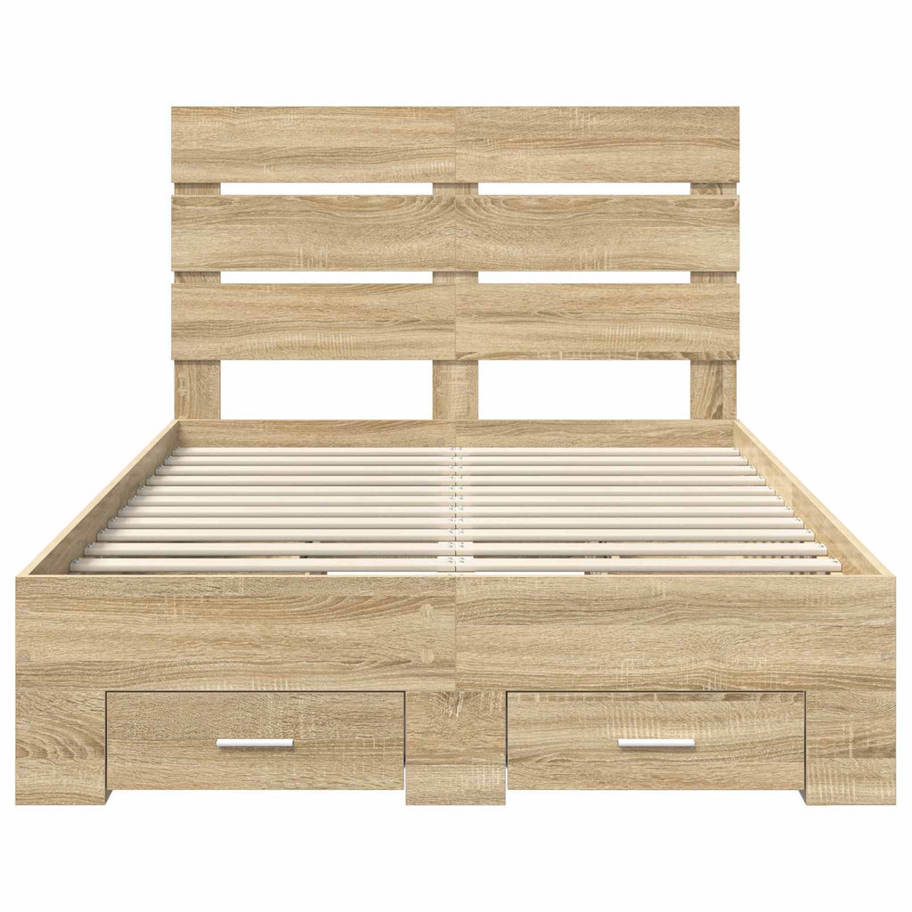 Ce cadre de lit de rangement moderne transforme ta chambre en un espace chic et organisé. Parfait pour ceux qui aiment les lignes simples et la fonctionnalité, ce cadre améliore l'esthétique de ta maison. Idéal pour les appartements ou les maisons minimalistes, sa forme rectangulaire apporte du charme, à la fois sophistiqué et confortable. Alliant style et praticité, il te permet de profiter de nuits sereines et de journées sans désordre. Cadre en bois d'ingénierie Fait avec du bois d'ingénierie de qualité, ce cadre robuste résiste à l'usage quotidien tout en gardant son charme. Choisi pour sa durabilité, il offre un look moderne qui s’accorde à ta déco. Tiroirs de rangement inclus Les tiroirs intégrés offrent des solutions pratiques pour les chambres avec peu d'espace. Faciles à ouvrir grâce à leurs poignées argentées, parfaits pour ranger vêtements, draps et autres affaires. Design moderne et chic Le cadre de lit affiche une esthétique moderne avec des lignes simples et peu d'ornement. Cette approche crée une sensation d'ouverture et de classe, parfaite pour ajouter une touche de sophistication à n'importe quelle chambre. Tête de lit pratique La tête de lit en bois robuste offre confort et soutien quand tu es assis dans le lit. Elle embellit la déco de la pièce et ajoute une touche de luxe. Entretien facile Les caractéristiques faciles à nettoyer incluent une surface lisse qui a besoin d'un simple coup de chiffon humide. Pour garder le lit pimpant, il faut peu d’efforts, garantissant qu'il reste une pièce maîtresse pendant des années.