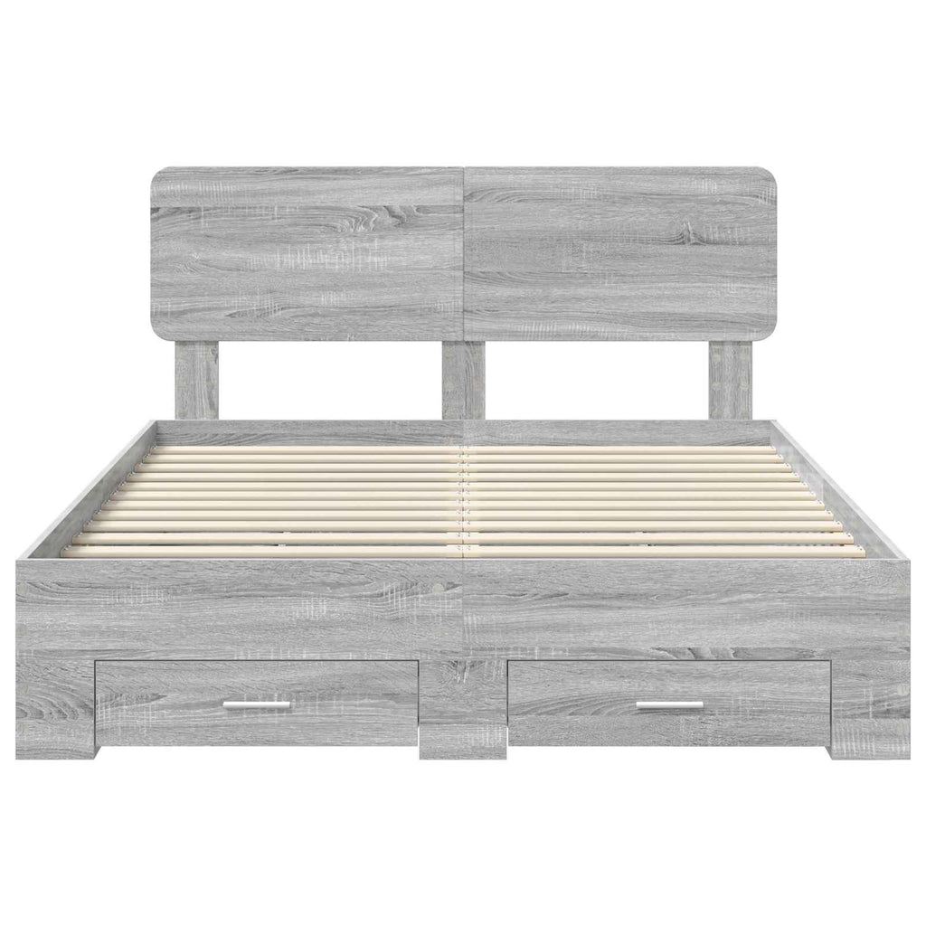 Ce cadre de lit de rangement moderne combine fonctionnalité et style, offrant une super solution contemporaine pour votre chambre. Son design épuré, avec des lignes simples et peu de décorations, s'adapte bien à un intérieur moderne. Idéal pour ceux qui cherchent à allier design et utilité, il offre beaucoup d'espace grâce à ses tiroirs intégrés, parfait pour les petits espaces ou pour ceux qui aiment vivre organisé. Structure en bois d'ingénierie Fait en bois d'ingénierie de haute qualité, ce cadre de lit est conçu pour durer. Sa construction robuste résiste facilement à l'usure quotidienne et s'intègre à tous les styles de chambre moderne. Tiroirs de rangement intégrés Ce cadre de lit moderne est équipé de tiroirs dans le même bois d'ingénierie, idéal pour ranger draps, vêtements ou coussins. Ce design optimise l'espace et garde votre chambre bien rangée sans sacrifier le style. Cadre à lattes rigides Le cadre à lattes fixes est composé de lattes robustes pour un soutien fiable de votre matelas, améliorant votre confort. Parfait pour ceux qui aiment une base stable, cette option vous assure des nuits paisibles. Design élégant du headboard Avec un headboard en bois d'ingénierie, ce lit accentue le look moderne. Il sert aussi de dossier confortable pour lire ou se reposer. Entretien facile Un simple coup d’éponge humide suffit pour garder ce cadre de lit en bon état. Un entretien minimal qui assure à votre lit de rester accueillant pendant des années.