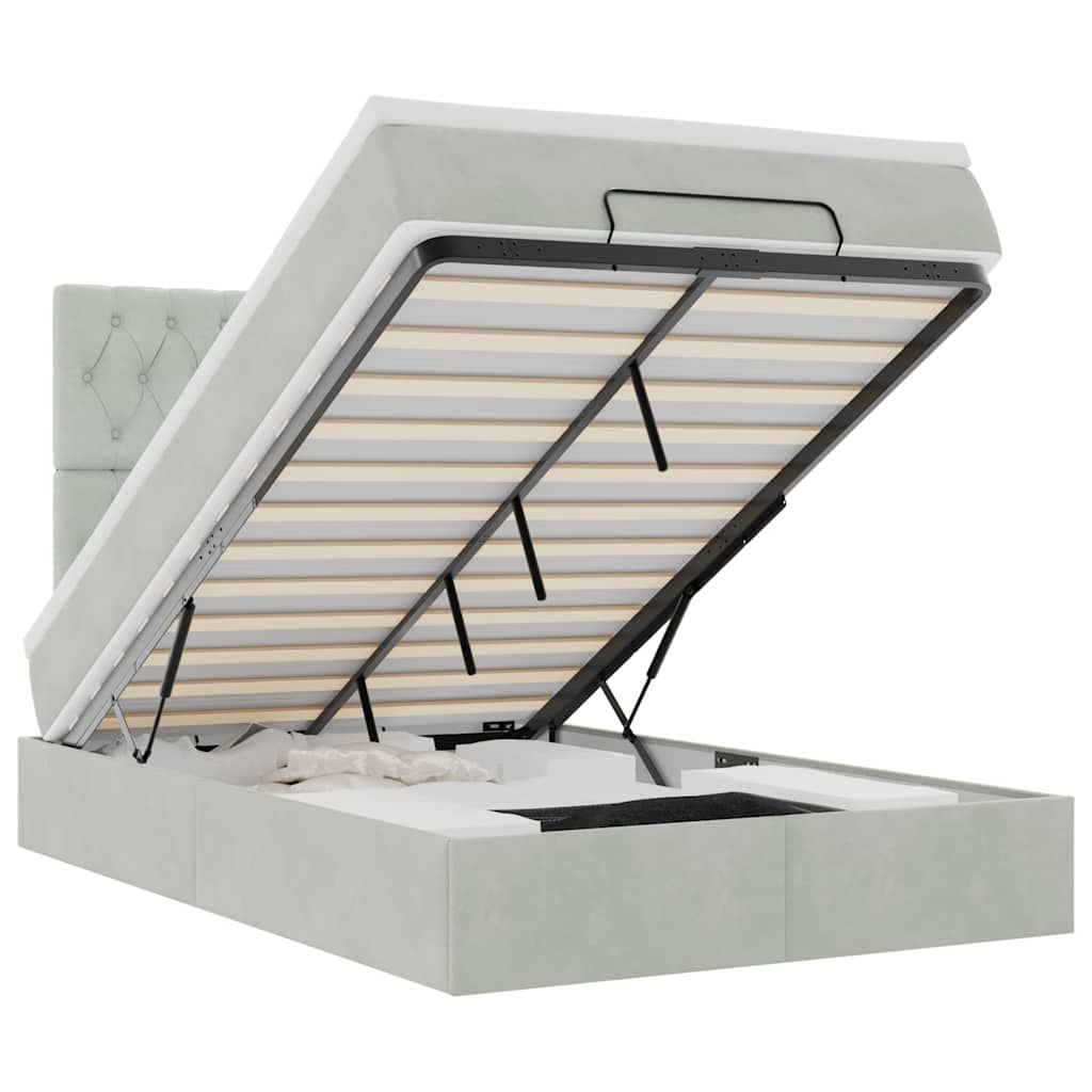 Utilisez ce cadre de lit ottoman avec matelas pour profiter d'une nuit de sommeil réparatrice ! Il vous offre à la fois une solution de rangement et une expérience de sommeil confortable. Matériau doux et confortable : le tissu en velours présente une surface douce et lisse qui offre une sensation agréable contre la peau, vous apportant chaleur et confort ultime.Matelas à ressorts ensachés : ce matelas à ressorts ensachés comporte des ressorts ensachés individuels qui fonctionnent indépendamment pour offrir un soutien personnalisé en réagissant uniquement à la pression exercée dans chaque zone. Cette conception empêche « l'enroulement » et réduit le transfert de mouvement par rapport aux matelas traditionnels à ressorts ouverts. Chaque ressort ensaché soutient le corps individuellement.Grand espace de rangement sous le lit : grâce au mécanisme de levage hydraulique, le cadre de lit offre un vaste espace de rangement sous le lit, maximisant ainsi l'espace sans encombrer le sol. D'une simple traction sur la poignée, le sommier se soulève en douceur, vous permettant de récupérer vos objets rapidement et sans effort.Surmatelas confortable : ce surmatelas améliore le soutien et le confort grâce à sa surface douce et respirante, tout en prolongeant la durée de vie de votre matelas. Sa housse amovible permet un lavage facile, ce qui facilite l'entretien. Bon à savoir :Pour des raisons d'hygiène, le matelas ne peut pas être retourné si l'emballage est retiré ou ouvert.