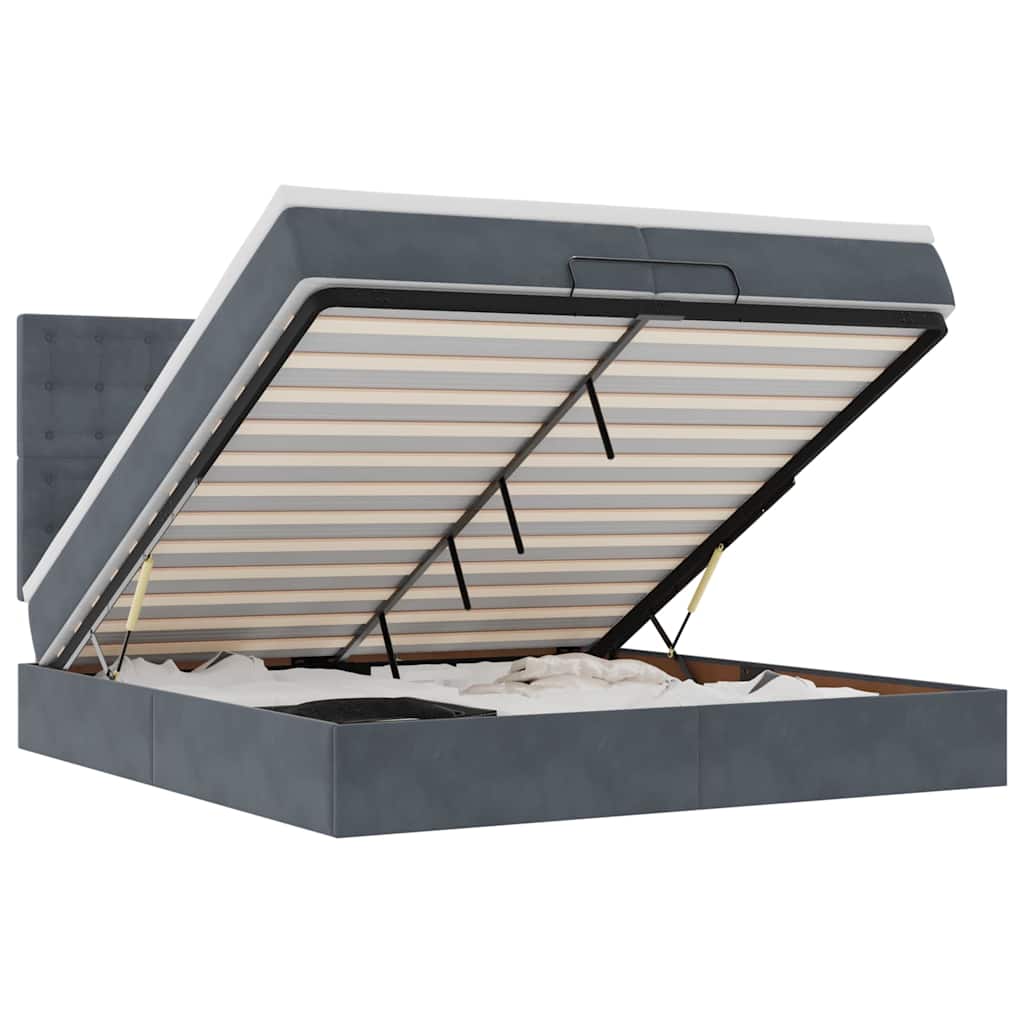 Cadre de lit ottoman avec matelas gris foncé 200x200 cm velours