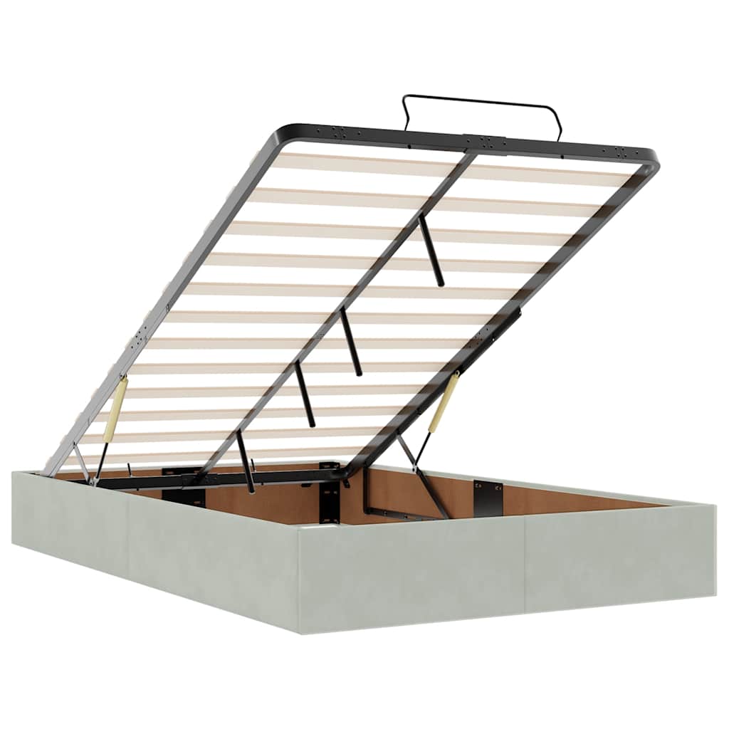 Cadre de lit ottoman et matelas gris clair 120x200 cm velours