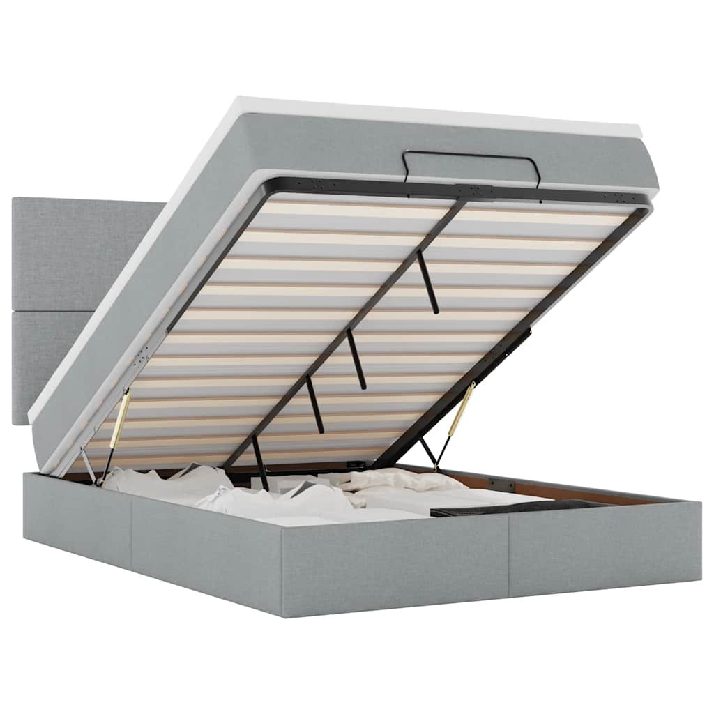 Utilisez ce cadre de lit ottoman avec matelas pour profiter d'une nuit de sommeil réparatrice ! Il vous offre à la fois une solution de rangement et une expérience de sommeil confortable. Matériau doux et durable : le tissu en polyester offre une combinaison de douceur, de respirabilité et de durabilité, vous garantissant un confort et une convivialité ultimes.Matelas à ressorts ensachés : ce matelas à ressorts ensachés comporte des ressorts ensachés individuels qui fonctionnent indépendamment pour offrir un soutien personnalisé en réagissant uniquement à la pression exercée dans chaque zone. Cette conception empêche « l'enroulement » et réduit le transfert de mouvement par rapport aux matelas traditionnels à ressorts ouverts. Chaque ressort ensaché soutient le corps individuellement.Grand espace de rangement sous le lit : grâce au mécanisme de levage hydraulique, le cadre de lit offre un vaste espace de rangement sous le lit, maximisant ainsi l'espace sans encombrer le sol. D'une simple traction sur la poignée, le sommier se soulève en douceur, vous permettant de récupérer vos objets rapidement et sans effort.Surmatelas confortable : ce surmatelas améliore le soutien et le confort grâce à sa surface douce et respirante, tout en prolongeant la durée de vie de votre matelas. Sa housse amovible permet un lavage facile, ce qui facilite l'entretien.Lumières LED pour une ambiance agréable : ce lit est équipé de lumières LED qui peuvent être facilement réglées pour créer un spectacle lumineux personnalisé. Vous pouvez personnaliser les modes, les couleurs et la luminosité pour améliorer l'ambiance de votre espace intérieur. Bon à savoir :Ce produit est doté d'un connecteur USB qui nécessite une source d'alimentation USB de 5V certifiée (non incluse).Pour des raisons d'hygiène, le matelas ne peut pas être retourné si l'emballage est retiré ou ouvert.Seule la partie avec un symbole de ciseaux peut être coupée et seule la partie avec l'USB continuera à fonctionner comme avant.