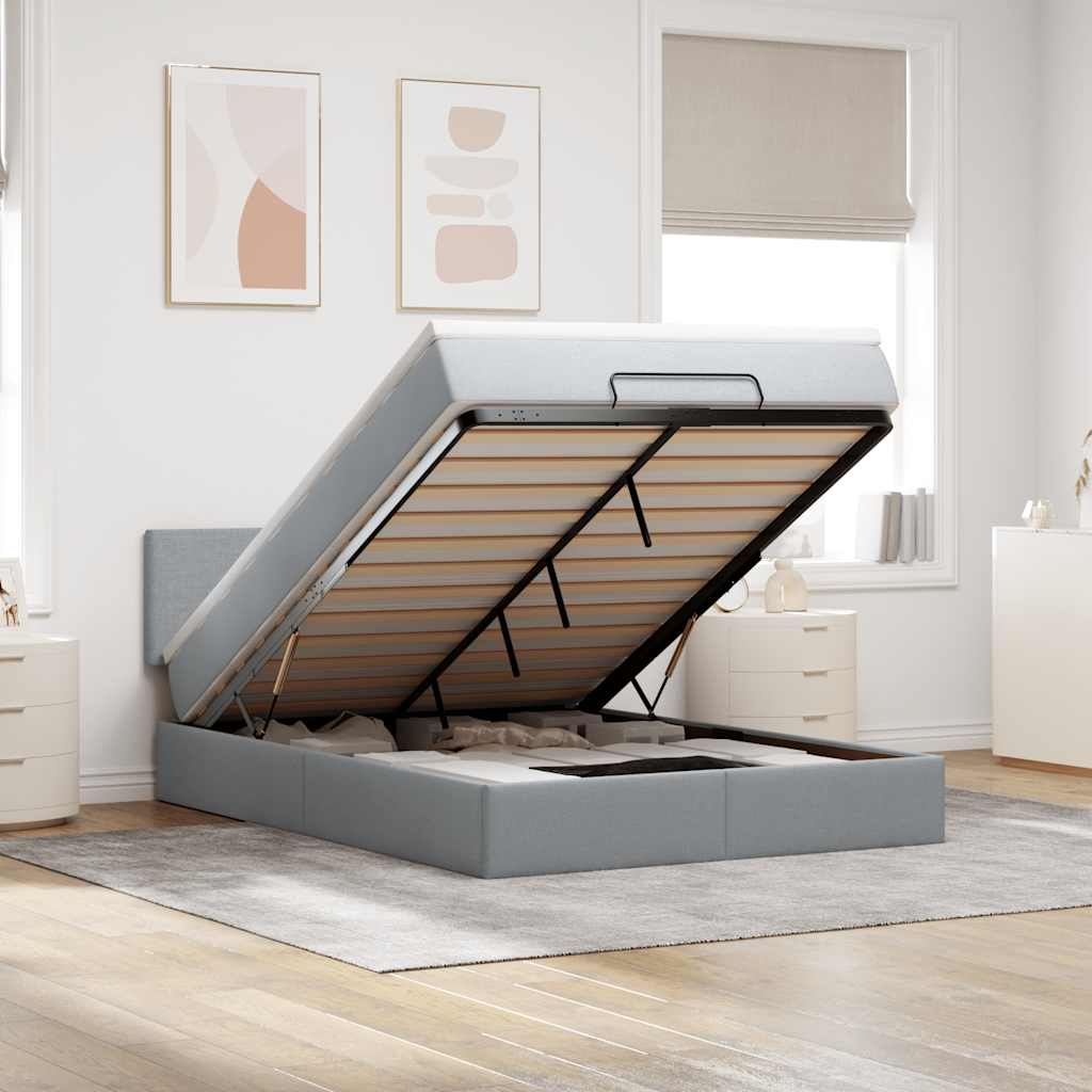 Cadre de lit ottoman et matelas gris clair 140x200 cm tissu