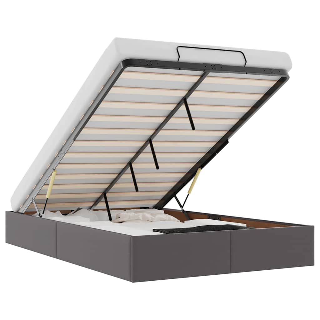 Ce cadre de lit ottoman allie harmonieusement esthétique moderne et fonctionnalité pratique, vous offrant à la fois une solution de rangement et une expérience de sommeil confortable. Longue durée de vie et entretien facile : le similicuir est un matériau très durable qui résiste aux taches, ce qui le rend facile à nettoyer avec un chiffon humide. Sa surface lisse lui confère un aspect élégant qui ressemble à celui du cuir véritable.Grand espace de rangement sous le lit : ce cadre de lit est doté d'un espace de rangement spacieux sous le lit, ce qui permet d'optimiser l'espace sans avoir besoin d'une surface au sol supplémentaire. Il offre suffisamment d'espace pour ranger des articles tels que des couettes supplémentaires, des oreillers et des vêtements de saison, ce qui en fait la solution idéale pour les espaces plus restreints.Mécanisme de levage pratique : le mécanisme de levage hydraulique intégré permet d'accéder facilement à vos affaires stockées sous le lit. D'une simple traction sur la poignée, le sommier se soulève en douceur, vous permettant de récupérer vos objets rapidement et sans effort.Pas besoin de sommier : le cadre de lit comprend un sommier à lattes qui offre un excellent soutien et une bonne respirabilité à votre matelas, éliminant ainsi la nécessité d'un sommier à ressorts. Bon à savoir :Un matelas n'est pas inclus avec ce lit. Nous offrons une sélection variée de matelas. Vous pouvez consulter notre boutique pour trouver un matelas assorti.