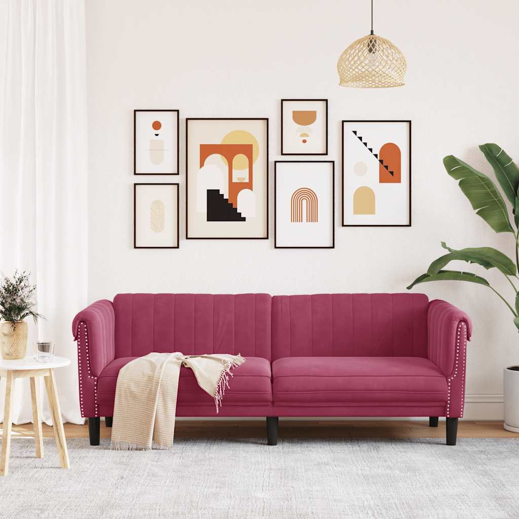 Ce canapé à 3 places est un excellent endroit pour discuter, lire, regarder la télévision ou simplement vous détendre. Il est destiné à être un point central dans votre maison. Velours doux : le velours est un tissu doux et luxueux qui se reconnaît à son tas dense de fibres uniformément coupées qui ont une touche lisse. Le tissu en velours présente un toucher doux distinctif, ce qui le rend confortable au toucher.Expérience de siège confortable : le canapé est très confortable avec son siège, ses accoudoirs et son dossier bien rembourrés.Pieds de soutien : le canapé rembourré est soutenu par des pieds robustes, qui assurent sa stabilité, sa sécurité et sa fermeté.Design accrocheur : doté d'un design simple mais moderne, ce siège de salon est destiné à attirer l'attention dans votre pièce.