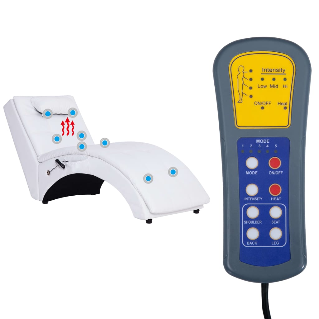 Notre chaise longue confortable au look élégant et épuré sera un supplément intemporel et pratique à toute pièce. Grâce à son design ergonomique et à son rembourrage épais, la chaise longue est très confortable pour vous détendre. De plus, ses pieds en acier et sa tapisserie en similicuir la rendent extrêmement robuste et durable. De plus, la chaise longue se distingue par des fonctions de massage et de chauffage. Avec différents points, zones et intensités de massage et télécommande incluse, la chaise longue vous apportera le plus grand confort.