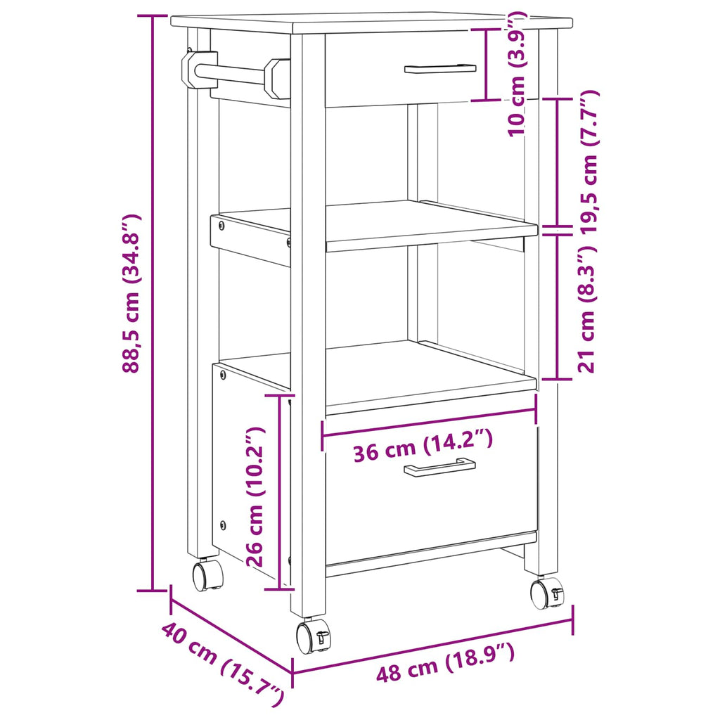 Ce chariot de cuisine moderne est un choix idéal, illustrant parfaitement la beauté fonctionnelle et la simplicité contemporaine. Conçu avec des lignes épurées et peu d'ornements, il s’intègre parfaitement chez vous tout en ajoutant une touche d'élégance tout en maximisant son utilité. Pour ceux qui recherchent des solutions pratiques et stylées, ce chariot fait à la fois office d'organisateur et d'élément décoratif, transformant chaque cuisine en un espace culinaire tendance. Bois de pin massif durable : Fait en pin massif solide, ce chariot de cuisine allie durabilité et look classique. Sa finition en bois brut apporte chaleur à votre cuisine, créant une ambiance accueillante. La robustesse du pin garantit que le chariot résiste à une utilisation régulière sans perdre son style. Roulettes pivotantes verrouillables : Avec quatre roulettes pivotantes à 360°, dont deux sont verrouillables, ce chariot offre une mobilité et une très bonne stabilité. Il se déplace facilement sur différentes surfaces tout en restant fixe quand on en a besoin. Le design des roulettes permet une manipulation facile et une adaptation rapide à vos besoins. Solutions de rangement pratiques : Avec son grand espace de rangement, ce chariot possède un tiroir et plusieurs étagères pour accueillir tous vos essentiels de cuisine. Que ce soit pour ranger des couverts, exposer des livres de cuisine ou garder des objets plus volumineux, ses compartiments généreux le rendent très adaptable. Design moderne et fonctionnel : Son style contemporain fait de ce chariot un excellent complément pour les cuisines modernes où le minimalisme est de mise. Ses lignes épurées et sa palette de couleurs polyvalente s'intègrent aisément dans les décors modernes, rehaussant l'espace tout en offrant pratique et style. Entretien facile : Avec son design qui demande peu d'entretien, un simple coup de chiffon sec suffit pour le garder en bon état. Cette simplicité d'entretien est parfaite pour les foyers occupés qui veulent allier esthétisme et praticité, sans se soucier des gros travaux de nettoyage.
