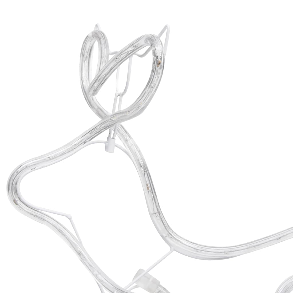 Ajoutez une touche d'éclat à votre intérieur pendant ce Noël avec cette décoration de Noël éclairée. Cet ornement est étanche avec un indice IP44. Le renne et le traîneau sont éclairés par des lumières LED bleues pour une lumière douce, ce qui en fait la décoration parfaite à l'intérieur et à l'extérieur. La corde à LED a 36 ampoules par mètre et 252 LED au total, avec des fonctionnalités ultra-lumineuses et économes en énergie. Remarque : une fiche est incluse dans la livraison. Pour plus de sécurité, n'utilisez le câble d'éclairage qu'en combinaison avec le RCD (Residual Current Device) (non inclus).