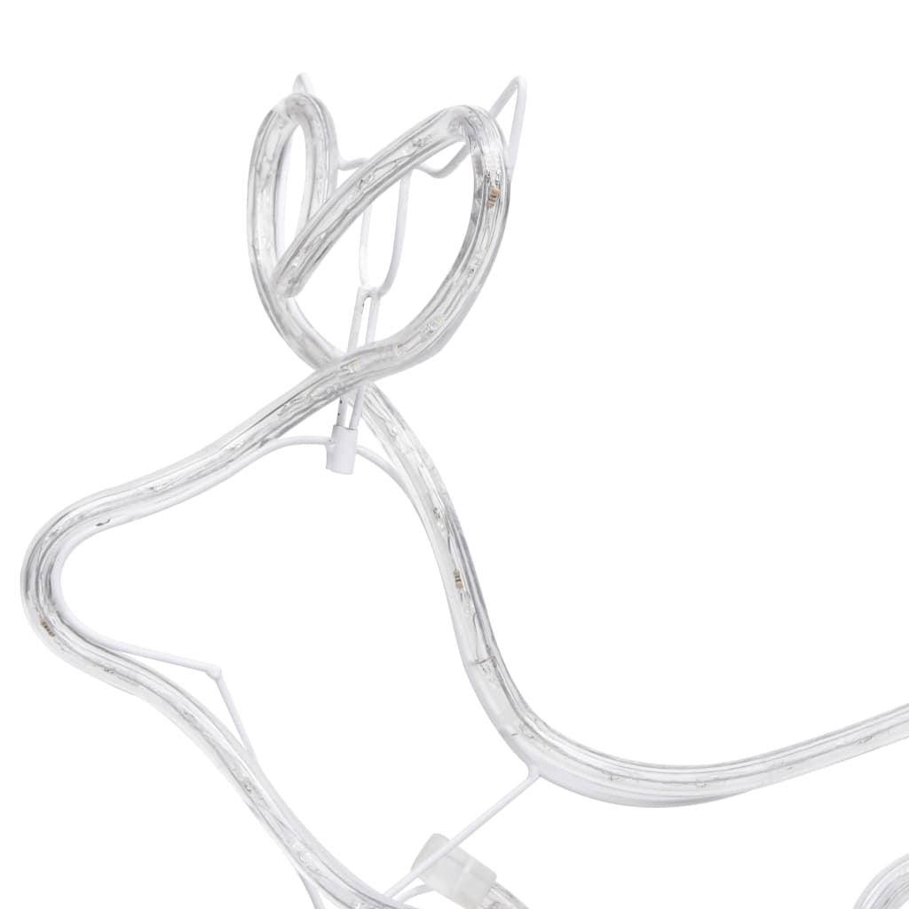 Ajoutez une touche d'éclat à votre intérieur pendant ce Noël avec cette décoration de Noël éclairée. Cet ornement est étanche avec un indice IP44. Le renne et le traîneau sont éclairés par des lumières LED bleues pour une lumière douce, ce qui en fait la décoration parfaite à l'intérieur et à l'extérieur. La corde à LED a 36 ampoules par mètre et 576 LED au total, avec des fonctionnalités ultra-lumineuses et économes en énergie. Remarque : une fiche est incluse dans la livraison. Pour plus de sécurité, n'utilisez le câble d'éclairage qu'en combinaison avec le RCD (Residual Current Device) (non inclus).