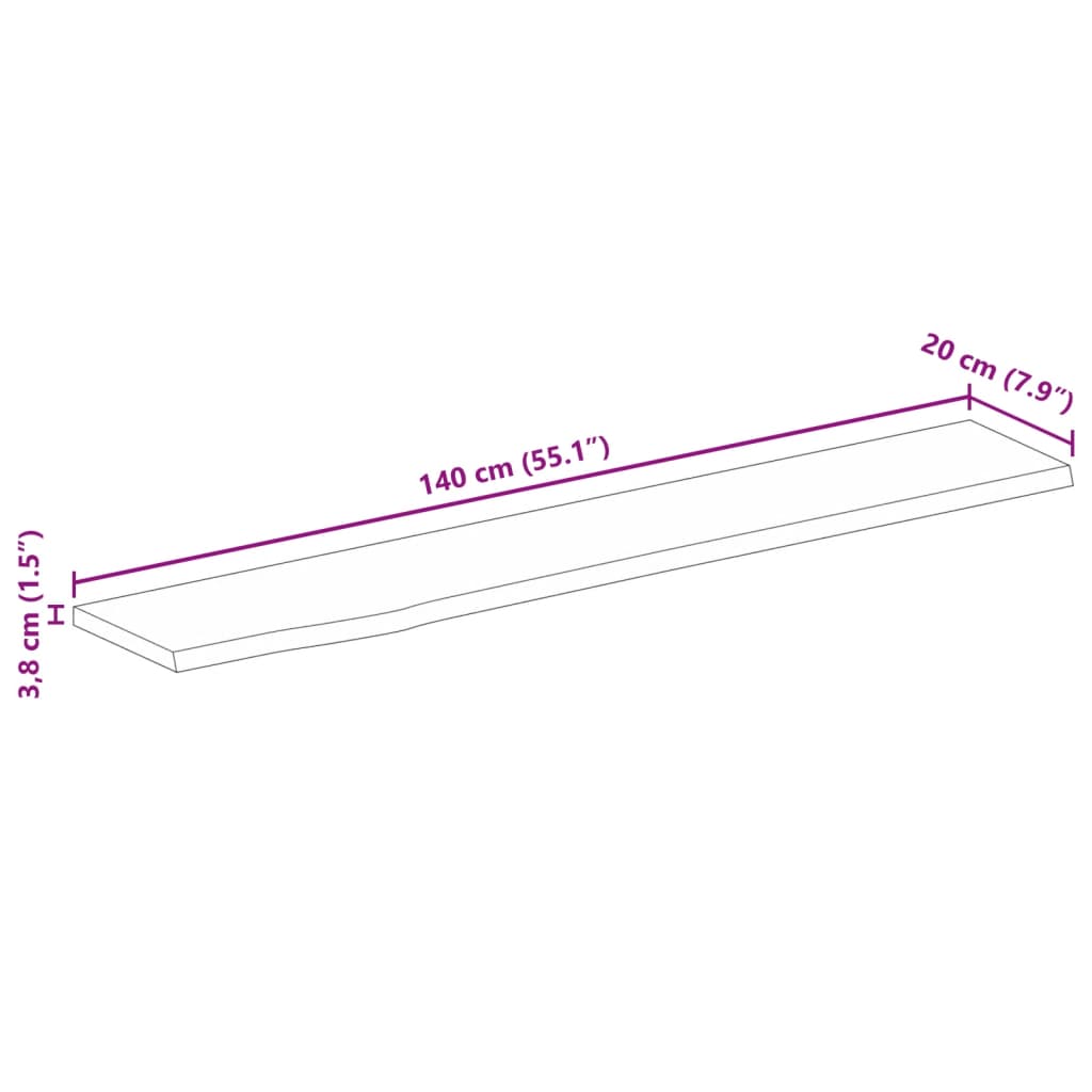 Donnez une nouvelle vie à votre table avec ce dessus de table en bois. C'est une excellente solution pour renouveler votre table à la maison ou dans un cadre commercial. Bois de manguier massif : le bois de manguier massif est un bois dur tropical solide qui fait des meubles robustes. Ses beaux grains de bois rendent chaque meuble légèrement différent l'un de l'autre. Multifonctionnel : le dessus de table de remplacement peut être combiné avec différentes bases en fonction de vos besoins. Design à bords vivant : le dessus du meuble en bois présente un bord vivant rustique. En effet, les nœuds, les fissures, les formes légèrement incurvées et les teintes font partie intégrante du meuble, et chaque pièce présente un caractère unique. Surface facile à nettoyer : le plateau lisse est facile à nettoyer avec un chiffon humide. Bon à savoir :Chaque article est unique, avec des variations de couleurs et de grains. La livraison est aléatoire, ce qui garantit l'exclusivité et l'individualité de votre produit.En raison de la forme naturelle du bois massif à bord naturel, la largeur peut varier légèrement de +1-2 cm ou –3-5 cm.