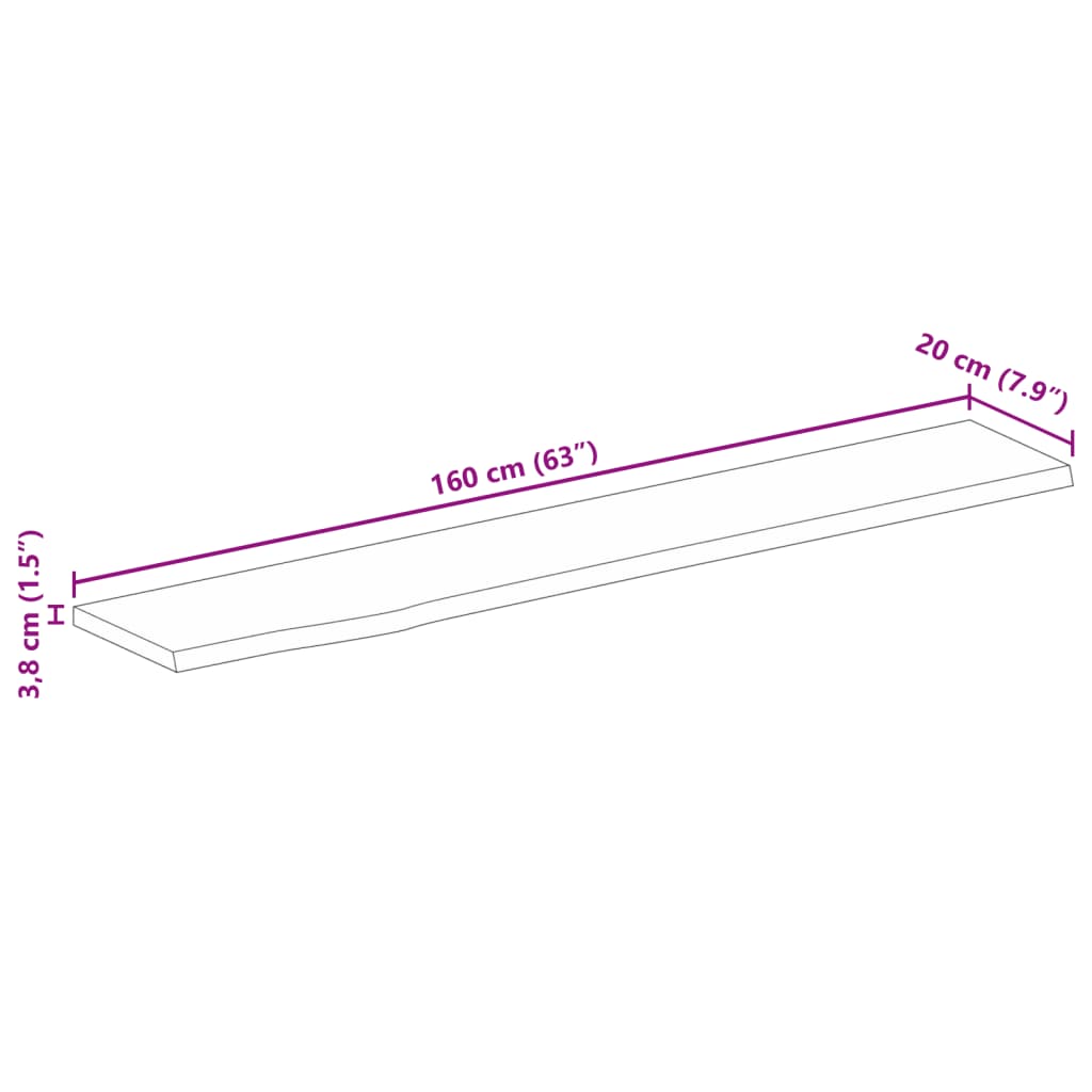 Donnez une nouvelle vie à votre table avec ce dessus de table en bois. C'est une excellente solution pour renouveler votre table à la maison ou dans un cadre commercial. Bois de manguier massif : le bois de manguier massif est un bois dur tropical solide qui fait des meubles robustes. Ses beaux grains de bois rendent chaque meuble légèrement différent l'un de l'autre. Multifonctionnel : le dessus de table de remplacement peut être combiné avec différentes bases en fonction de vos besoins. Design à bords vivant : le dessus du meuble en bois présente un bord vivant rustique. En effet, les nœuds, les fissures, les formes légèrement incurvées et les teintes font partie intégrante du meuble, et chaque pièce présente un caractère unique. Surface facile à nettoyer : le plateau lisse est facile à nettoyer avec un chiffon humide. Bon à savoir :Chaque article est unique, avec des variations de couleurs et de grains. La livraison est aléatoire, ce qui garantit l'exclusivité et l'individualité de votre produit.En raison de la forme naturelle du bois massif à bord naturel, la largeur peut varier légèrement de +1-2 cm ou –3-5 cm.