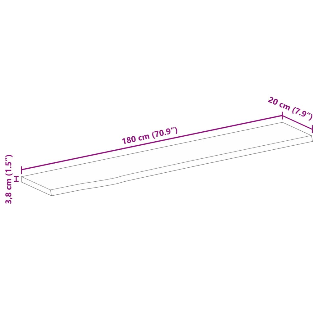 Donnez une nouvelle vie à votre table avec ce dessus de table en bois. C'est une excellente solution pour renouveler votre table à la maison ou dans un cadre commercial. Bois de manguier massif : le bois de manguier massif est un bois dur tropical solide qui fait des meubles robustes. Ses beaux grains de bois rendent chaque meuble légèrement différent l'un de l'autre. Multifonctionnel : le dessus de table de remplacement peut être combiné avec différentes bases en fonction de vos besoins. Design à bords vivant : le dessus du meuble en bois présente un bord vivant rustique. En effet, les nœuds, les fissures, les formes légèrement incurvées et les teintes font partie intégrante du meuble, et chaque pièce présente un caractère unique. Surface facile à nettoyer : le plateau lisse est facile à nettoyer avec un chiffon humide. Bon à savoir :Chaque article est unique, avec des variations de couleurs et de grains. La livraison est aléatoire, ce qui garantit l'exclusivité et l'individualité de votre produit.En raison de la forme naturelle du bois massif à bord naturel, la largeur peut varier légèrement de +1-2 cm ou –3-5 cm.