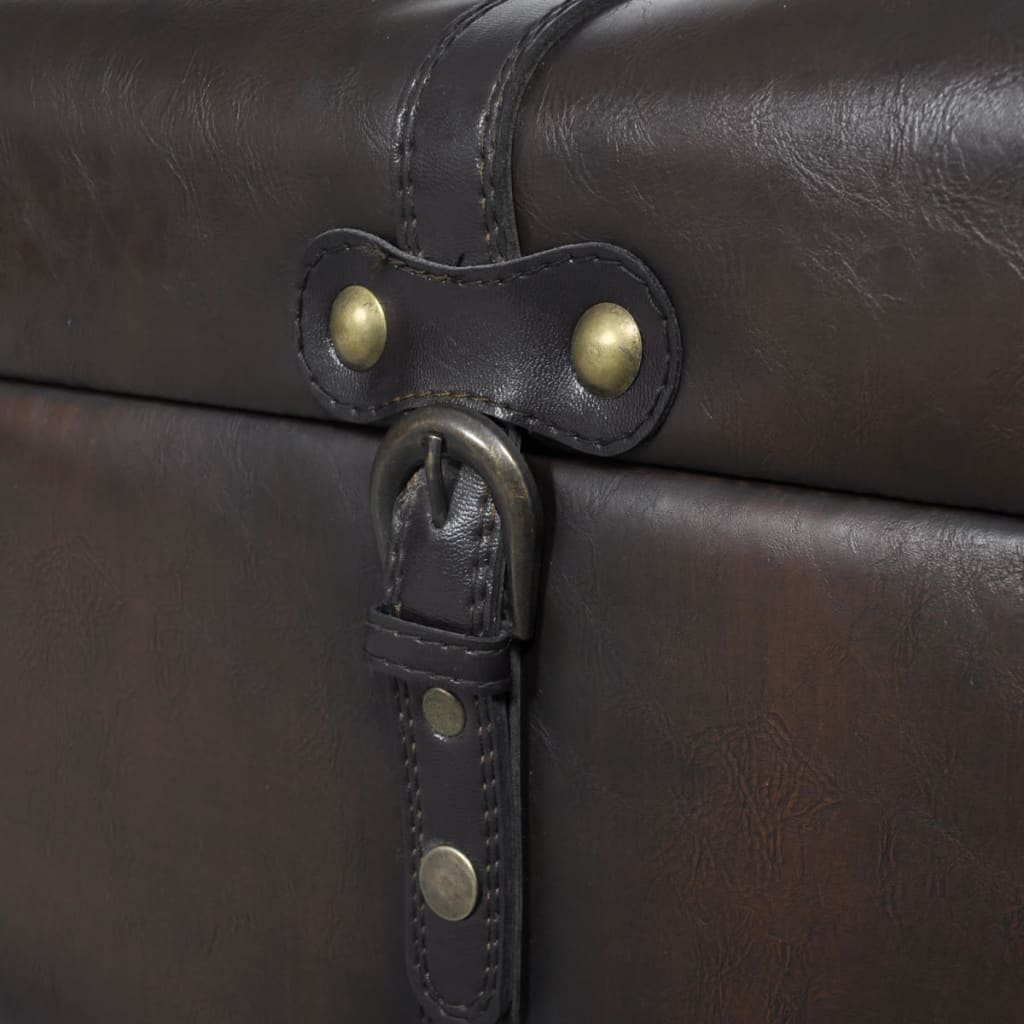Ce banc de rangement contient un long banc de rangement et 2 poufs. Doté d'un style élégant avec une finition riche en marron foncé, il est le choix idéal pour compléter votre décoration intérieure. Le banc, ainsi que les 2 poufs, ont un cadre en bois durable recouvert de similicuir de haute qualité et facile à nettoyer. Le dessus capitonné et le rembourrage moelleux vous apporteront sûrement un confort optimal. Dans le même temps, le meuble fournit suffisamment d’espace en dessous pour stocker tout type d'articles. L'espace de rangement intérieur caché le rend fonctionnel sans nuire à son aspect élégant. Les poignées attachées sur le banc et les poufs garantissent un confort et une meilleure adhérence, tandis que les boucles permettent de verrouiller l'ensemble de banc pour plus de sécurité.