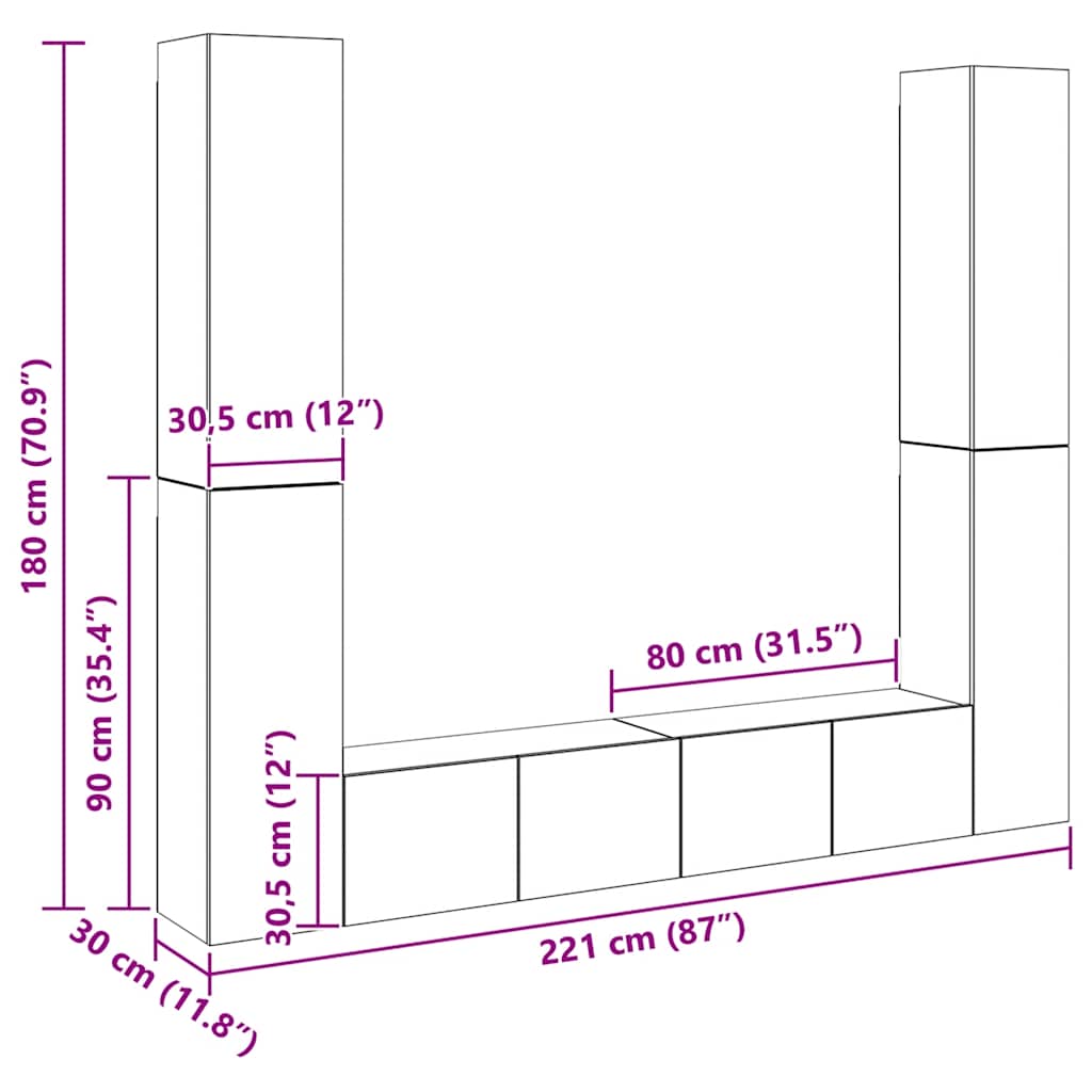 - 4 x meuble TV : 30,5 x 30 x 90 cm (l x P x H)