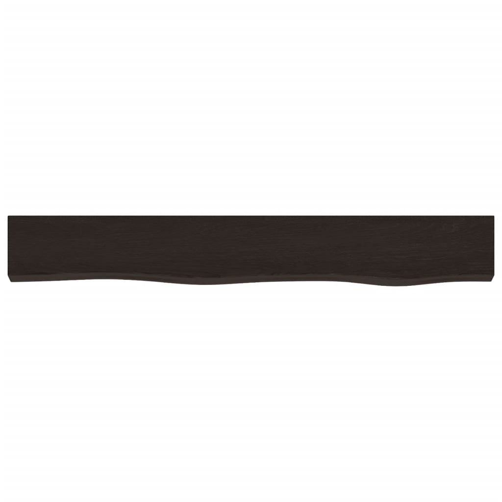 Avez-vous besoin de plus de possibilités de stockage mais n’avez pas d’espace ? Cette étagère murale de style rustique est la solution idéale. Construction durable : l'étagère murale est fabriquée en bois de chêne massif, un matériau naturel magnifique. Le bois de chêne a une couleur marron moyen et un grain dense, ce qui contribue à son aspect unique.Applications polyvalentes : en plus d'une étagère, cette étagère de rangement peut être combinée avec différentes bases selon vos besoins. Elle peut être utilisée comme dessus de salle de bain, tablette d'armoire, étagère de bureau, dessus de table, etc.Surface traitée : l'étagère en bois a été traitée avec une peinture foncée. Elle est donc prête à l'emploi car une finition supplémentaire n'est pas nécessaire.Fabriquée à la main avec un bord vif : cette étagère est fabriquée à la main avec un bord vif. Les nœuds, les fissures, les formes légèrement incurvées et les tons de couleur font partie du bois de chêne, ce qui confère à chaque étagère un caractère unique. La livraison est aléatoire, ce qui garantit l'exclusivité et l'individualité de votre produit. Bon à savoir :En tant que produit naturel, le bois peut présenter des nœuds et des imperfections que nous remplissons avec des garnitures noires pour garantir un aspect lisse.