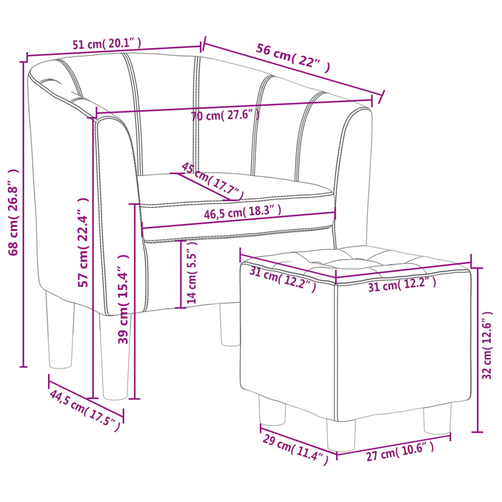 Ce fauteuil cabriolet moderne avec repose-pied ajoutera une touche d'élégance à votre salon, chambre à coucher, chambre d'amis ou bureau ! Matériau durable : le cuir PU premium est un matériau exceptionnellement durable. Il est résistant aux taches, ce qui le rend facile à nettoyer avec un chiffon humide. Sa surface lisse lui confère un aspect élégant et la beauté du cuir véritable. Cadre robuste et stable : le cadre de ce fauteuil est fabriqué en contreplaqué et en bois de pin, ce qui lui confère robustesse et stabilité.Repose-pied pratique : ce repose-pied convient pour reposer vos pieds ou pour vous offrir un siège supplémentaire dans votre pièce. De plus, le design simple et la taille compacte le rendent idéal pour presque tous vos espaces de vie.Expérience d'assise confortable : cette chaise de chambre à coucher est très confortable grâce à son assise, son dossier et ses accoudoirs bien rembourrés. C'est le choix idéal pour vous détendre en lisant, en discutant, en regardant la télévision ou en écoutant de la musique.