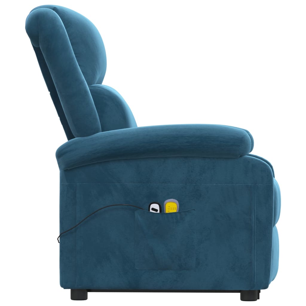 Asseyez-vous et détendez-vous dans ce fauteuil de massage très confortable ! Fonction d'inclinaison manuelle : le fauteuil inclinable est spécialement conçu avec 3 positions d'inclinaison afin que vous puissiez régler manuellement le dossier et le repose-pieds selon votre confort.Fonction de levage électrique : ce fauteuil inclinable pour personnes âgées est équipé d'un moteur électrique pour la fonction de levage. Grâce à la fonction qui pousse toute la chaise vers le haut, vous pouvez facilement vous tenir debout sans stresser votre dos et vos genoux grâce à la commande manuelle à 2 boutons.Fonction de vibration : les 6 points de massage vous permettent de faire l'expérience d'un massage mieux ciblé. De plus, la télécommande incluse vous permet de choisir différents programmes de massage. La fonction de massage est alimentée par le connecteur USB, mais la source d'alimentation USB 5V certifiée n'est pas incluse.Expérience d'assise confortable : le siège, le dossier et les larges accoudoirs rembourrés épais recouverts de velours procurent une sensation confortable et chaleureuse, vous faisant vous sentir enlacé lorsque vous êtes assis. Le velours est un tissu doux et confortable qui est agréable sur la peau.Cadre solide et stable : le cadre en bois et en métal offre une structure solide et une grande stabilité. Ce fauteuil inclinable est confortable et durable.