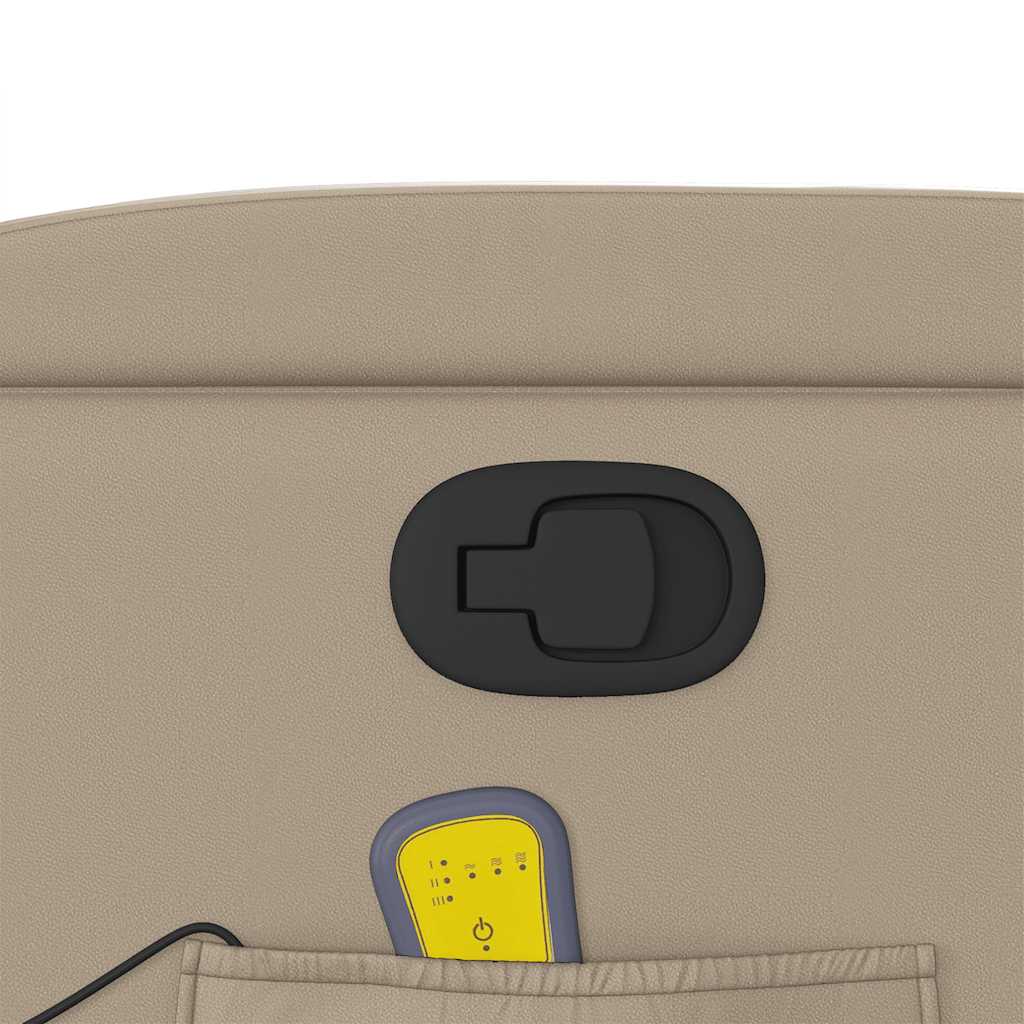 Asseyez-vous et détendez-vous dans ce fauteuil inclinable de massage très confortable ! Fonction d'inclinaison manuelle : ce fauteuil inclinable est doté d'une poignée du côté droit. Vous pouvez régler manuellement le repose-pieds et le dossier dans n'importe quelle position selon votre confort en tirant simplement sur la poignée. Cette fonction permet une inclinaison maximale de 135 degrés. De plus, le dossier peut revenir rapidement à sa position d'origine en tirant simplement sur la poignée.Fonction de vibration : les 6 points de massage vous permettent de faire l'expérience d'un massage mieux ciblé. De plus, la télécommande incluse vous permet de choisir différents programmes de massage. La fonction de massage est alimentée par le connecteur USB, mais la source d'alimentation USB 5V certifiée n'est pas incluse.Expérience de siège confortable : le siège, le dossier et les larges accoudoirs rembourrés épais recouverts de similicuir procurent une sensation confortable, vous faisant vous sentir enlacé lorsque vous êtes assis. Le similicuir est un matériau très résistant. Il est résistant aux taches, ce qui le rend facile à nettoyer avec un chiffon humide. La surface lisse donne également un aspect luxueux et la beauté du cuir véritable.Porte-gobelets et poche latérale pratiques : ce fauteuil dispose de deux porte-gobelets pratiques pour vos boissons et d'une poche latérale pour votre télécommande ou pour garder vos objets essentiels à portée de main.Cadre solide et stable : le cadre en bois et en métal offre une structure solide et une grande stabilité. Ce fauteuil inclinable est confortable et durable.