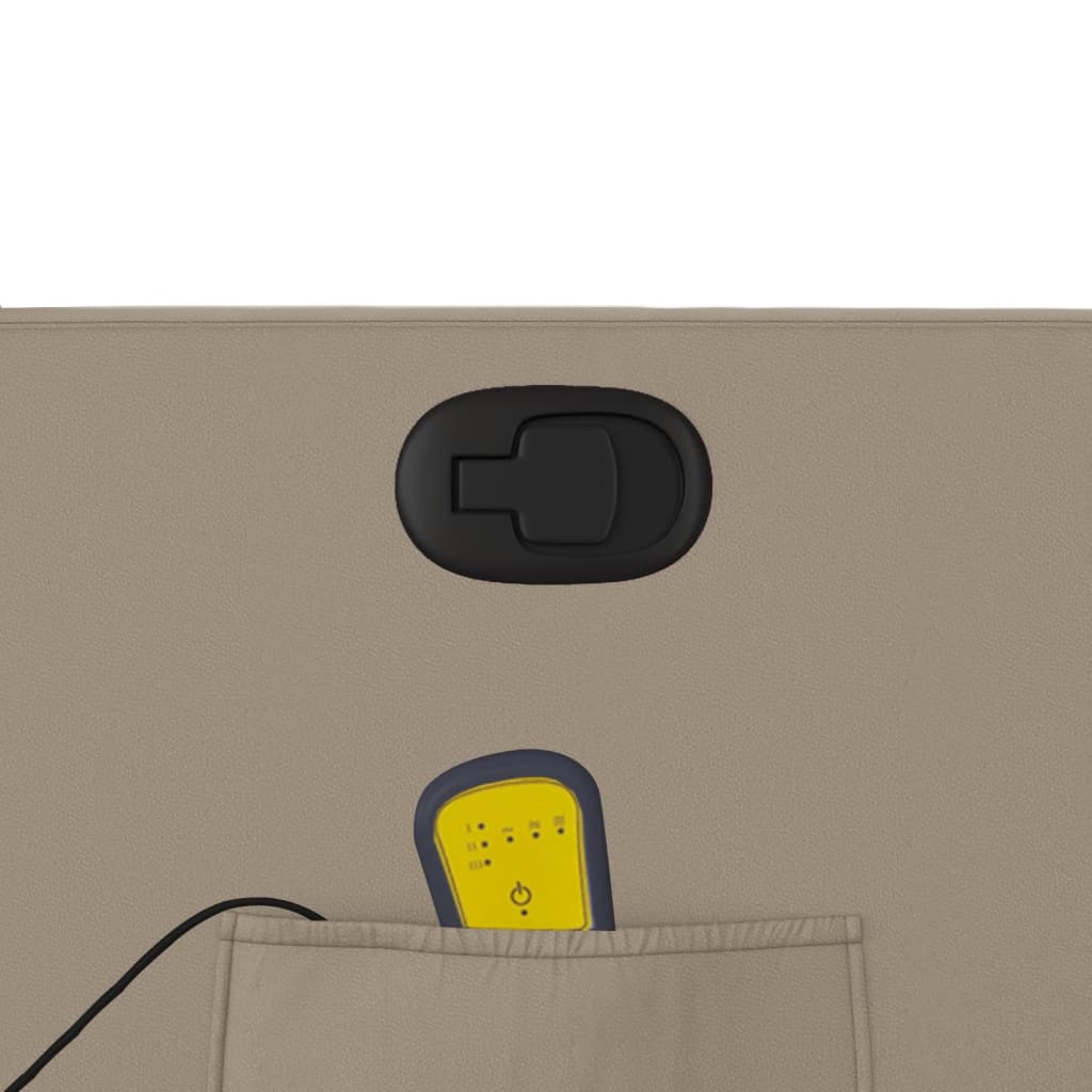 Asseyez-vous et détendez-vous dans ce fauteuil inclinable de massage très confortable ! Fonction d'inclinaison manuelle : ce fauteuil inclinable est doté d'une poignée du côté droit. Vous pouvez régler manuellement le repose-pieds et le dossier dans n'importe quelle position selon votre confort en tirant simplement sur la poignée. Cette fonction permet une inclinaison maximale de 135 degrés. De plus, le dossier peut revenir rapidement à sa position d'origine en tirant simplement sur la poignée.Fonction de vibration : les 6 points de massage vous permettent de faire l'expérience d'un massage mieux ciblé. De plus, la télécommande incluse vous permet de choisir différents programmes de massage. La fonction de massage est alimentée par le connecteur USB, mais la source d'alimentation USB 5V certifiée n'est pas incluse.Expérience de siège confortable : le siège, le dossier et les larges accoudoirs rembourrés épais recouverts de similicuir procurent une sensation confortable, vous faisant vous sentir enlacé lorsque vous êtes assis. Le similicuir est un matériau très résistant. Il est résistant aux taches, ce qui le rend facile à nettoyer avec un chiffon humide. La surface lisse donne également un aspect luxueux et la beauté du cuir véritable.Poche latérale pratique : ce fauteuil est doté d'une poche latérale pour ranger votre télécommande ou garder vos objets essentiels à portée de main.Cadre solide et stable : le cadre en bois et en métal offre une structure solide et une grande stabilité. Ce fauteuil inclinable est confortable et durable.