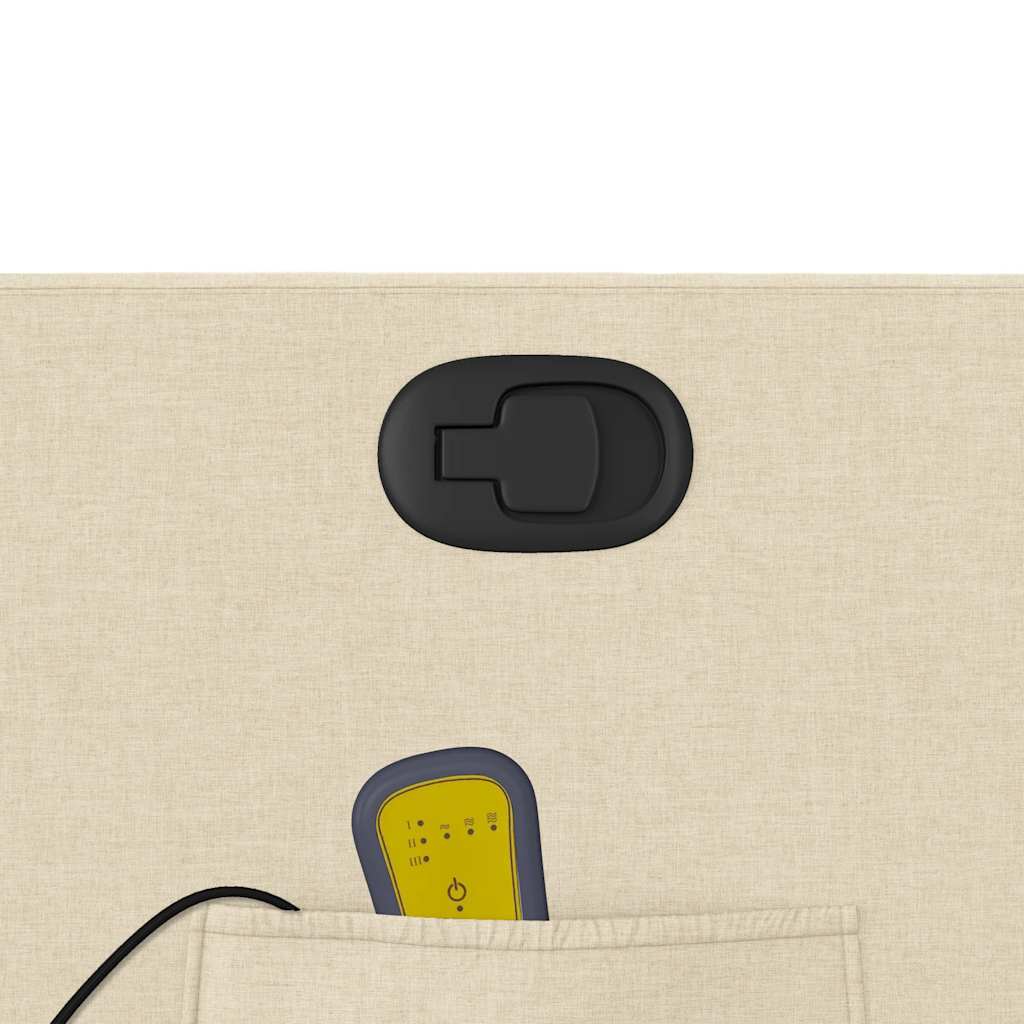 Asseyez-vous et détendez-vous dans ce fauteuil inclinable de massage très confortable ! Fonction d'inclinaison manuelle : ce fauteuil inclinable est doté d'une poignée du côté droit. Vous pouvez régler manuellement le repose-pieds et le dossier dans n'importe quelle position selon votre confort en tirant simplement sur la poignée. Cette fonction permet une inclinaison maximale de 135 degrés. De plus, le dossier peut revenir rapidement à sa position d'origine en tirant simplement sur la poignée.Fonction de vibration : les 6 points de massage vous permettent de faire l'expérience d'un massage mieux ciblé. De plus, la télécommande incluse vous permet de choisir différents programmes de massage. La fonction de massage est alimentée par le connecteur USB, mais la source d'alimentation USB 5V certifiée n'est pas incluse.Expérience d'assise confortable : le siège, le dossier et les larges accoudoirs bien rembourrés recouverts de tissu procurent une sensation confortable et chaleureuse, vous permettant de vous sentir enveloppé lorsque vous êtes assis. Le tissu présente un aspect simple et épuré et est respirant et durable.Poche latérale pratique : ce fauteuil est doté d'une poche latérale pour ranger votre télécommande ou garder vos objets essentiels à portée de main.Cadre solide et stable : le cadre en bois et en métal offre une structure solide et une grande stabilité. Ce fauteuil inclinable est confortable et durable.