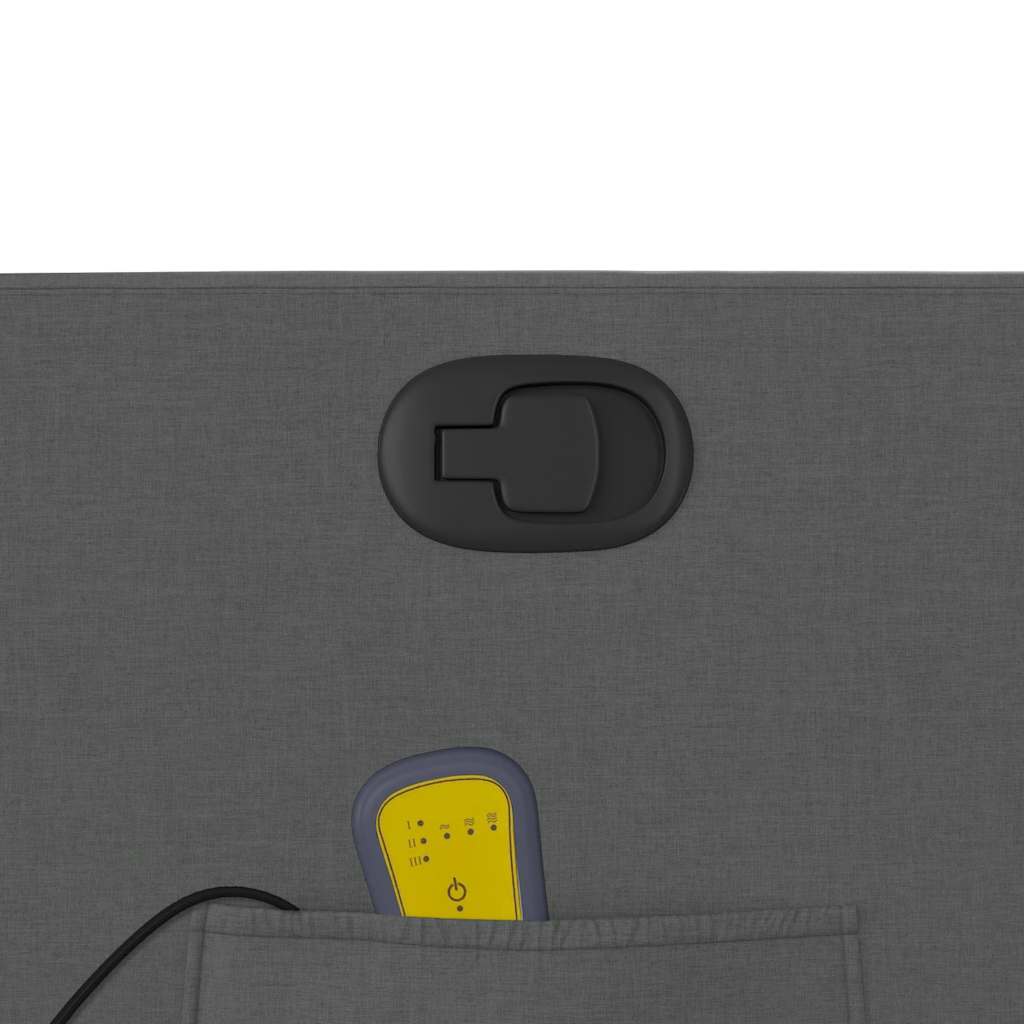 Asseyez-vous et détendez-vous dans ce fauteuil inclinable de massage très confortable ! Fonction d'inclinaison manuelle : ce fauteuil inclinable est doté d'une poignée du côté droit. Vous pouvez régler manuellement le repose-pieds et le dossier dans n'importe quelle position selon votre confort en tirant simplement sur la poignée. Cette fonction permet une inclinaison maximale de 135 degrés. De plus, le dossier peut revenir rapidement à sa position d'origine en tirant simplement sur la poignée.Fonction de vibration : les 6 points de massage vous permettent de faire l'expérience d'un massage mieux ciblé. De plus, la télécommande incluse vous permet de choisir différents programmes de massage. La fonction de massage est alimentée par le connecteur USB, mais la source d'alimentation USB 5V certifiée n'est pas incluse.Expérience d'assise confortable : le siège, le dossier et les larges accoudoirs bien rembourrés recouverts de tissu procurent une sensation confortable et chaleureuse, vous permettant de vous sentir enveloppé lorsque vous êtes assis. Le tissu présente un aspect simple et épuré et est respirant et durable.Poche latérale pratique : ce fauteuil est doté d'une poche latérale pour ranger votre télécommande ou garder vos objets essentiels à portée de main.Cadre solide et stable : le cadre en bois et en métal offre une structure solide et une grande stabilité. Ce fauteuil inclinable est confortable et durable.