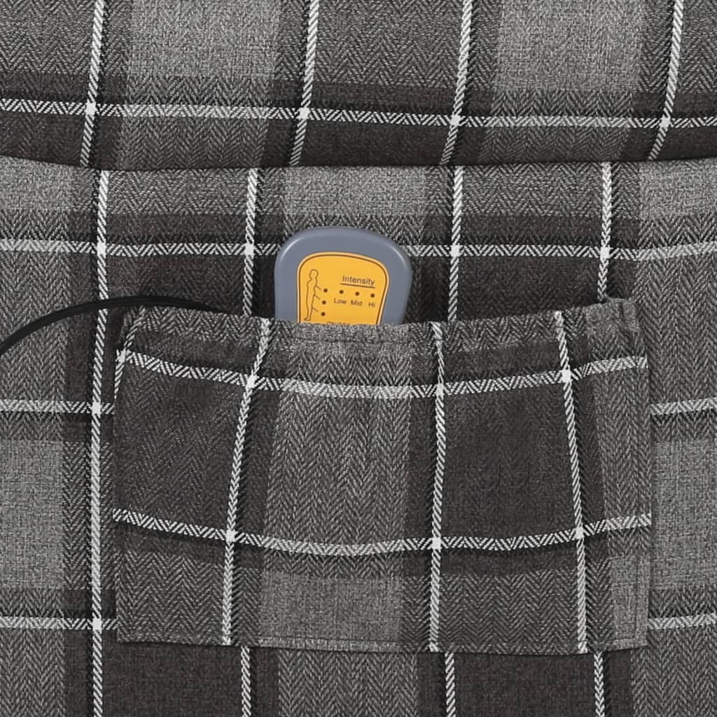 Ce fauteuil de massage inclinable est une excellente solution d’assise pour votre salon. Le fauteuil de massage électrique est fabriqué en tissu et soutenu par des pieds en bois, ce qui le rend solide et doux pour être assise. Le fauteuil inclinable de massage possède 6 points de massage pour le dos, le siège et les jambes. La commande manuelle incluse vous permet de choisir différents programmes de massage. En outre, le dossier peut être réglé vers l'arrière, tandis que le repose-pied peut être réglé vers le haut. Cette position vous permet de vous allonger confortablement. Ce fauteuil inclinable de massage électrique est également équipé d'une poche latérale pour la commande manuelle. Remarque : ce produit est doté d'un connecteur USB, mais la source d'alimentation certifiée de USB 5V n'est pas incluse.