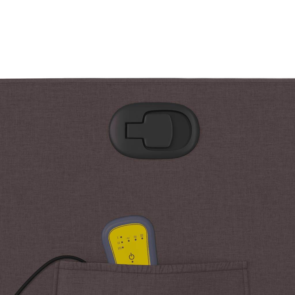 Asseyez-vous et détendez-vous dans ce fauteuil inclinable de massage très confortable ! Fonction d'inclinaison manuelle : ce fauteuil inclinable est doté d'une poignée du côté droit. Vous pouvez régler manuellement le repose-pieds et le dossier dans n'importe quelle position selon votre confort en tirant simplement sur la poignée. Cette fonction permet une inclinaison maximale de 135 degrés. De plus, le dossier peut revenir rapidement à sa position d'origine en tirant simplement sur la poignée.Fonction de vibration : les 6 points de massage vous permettent de faire l'expérience d'un massage mieux ciblé. De plus, la télécommande incluse vous permet de choisir différents programmes de massage. La fonction de massage est alimentée par le connecteur USB, mais la source d'alimentation USB 5V certifiée n'est pas incluse.Expérience d'assise confortable : le siège, le dossier et les larges accoudoirs bien rembourrés recouverts de tissu procurent une sensation confortable et chaleureuse, vous permettant de vous sentir enveloppé lorsque vous êtes assis. Le tissu présente un aspect simple et épuré et est respirant et durable.Poche latérale pratique : ce fauteuil est doté d'une poche latérale pour ranger votre télécommande ou garder vos objets essentiels à portée de main.Cadre solide et stable : le cadre en bois et en métal offre une structure solide et une grande stabilité. Ce fauteuil inclinable est confortable et durable.