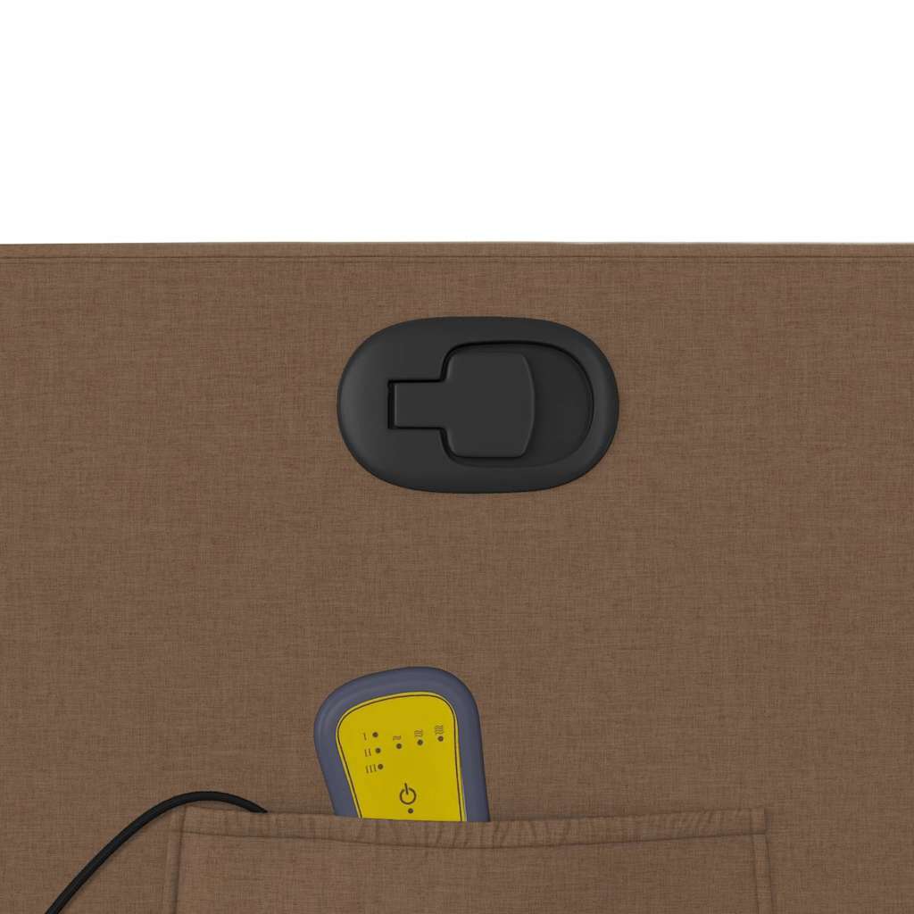 Asseyez-vous et détendez-vous dans ce fauteuil inclinable de massage très confortable ! Fonction d'inclinaison manuelle : ce fauteuil inclinable est doté d'une poignée du côté droit. Vous pouvez régler manuellement le repose-pieds et le dossier dans n'importe quelle position selon votre confort en tirant simplement sur la poignée. Cette fonction permet une inclinaison maximale de 135 degrés. De plus, le dossier peut revenir rapidement à sa position d'origine en tirant simplement sur la poignée.Fonction de vibration : les 6 points de massage vous permettent de faire l'expérience d'un massage mieux ciblé. De plus, la télécommande incluse vous permet de choisir différents programmes de massage. La fonction de massage est alimentée par le connecteur USB, mais la source d'alimentation USB 5V certifiée n'est pas incluse.Expérience d'assise confortable : le siège, le dossier et les larges accoudoirs bien rembourrés recouverts de tissu procurent une sensation confortable et chaleureuse, vous permettant de vous sentir enveloppé lorsque vous êtes assis. Le tissu présente un aspect simple et épuré et est respirant et durable.Poche latérale pratique : ce fauteuil est doté d'une poche latérale pour ranger votre télécommande ou garder vos objets essentiels à portée de main.Cadre solide et stable : le cadre en bois et en métal offre une structure solide et une grande stabilité. Ce fauteuil inclinable est confortable et durable.