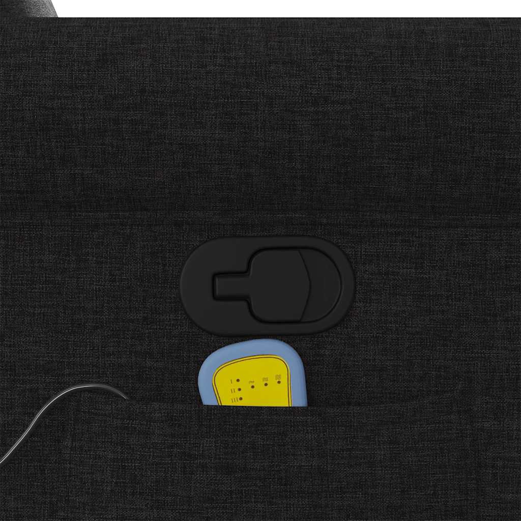 Asseyez-vous et détendez-vous dans ce fauteuil inclinable de massage très confortable ! Fonction d'inclinaison manuelle : ce fauteuil inclinable est doté d'une poignée du côté droit. Vous pouvez régler manuellement le repose-pieds et le dossier dans n'importe quelle position selon votre confort en tirant simplement sur la poignée. Cette fonction permet une inclinaison maximale de 135 degrés. De plus, le dossier peut revenir rapidement à sa position d'origine en tirant simplement sur la poignée.Fonction de vibration : les 6 points de massage vous permettent de faire l'expérience d'un massage mieux ciblé. De plus, la télécommande incluse vous permet de choisir différents programmes de massage. La fonction de massage est alimentée par le connecteur USB, mais la source d'alimentation USB 5V certifiée n'est pas incluse.Expérience d'assise confortable : le siège, le dossier et les larges accoudoirs bien rembourrés recouverts de tissu procurent une sensation confortable et chaleureuse, vous permettant de vous sentir enveloppé lorsque vous êtes assis. Le tissu présente un aspect simple et épuré et est respirant et durable.Poche latérale pratique : ce fauteuil est doté d'une poche latérale pour ranger votre télécommande ou garder vos objets essentiels à portée de main.Cadre solide et stable : le cadre en bois et en métal offre une structure solide et une grande stabilité. Ce fauteuil inclinable est confortable et durable.