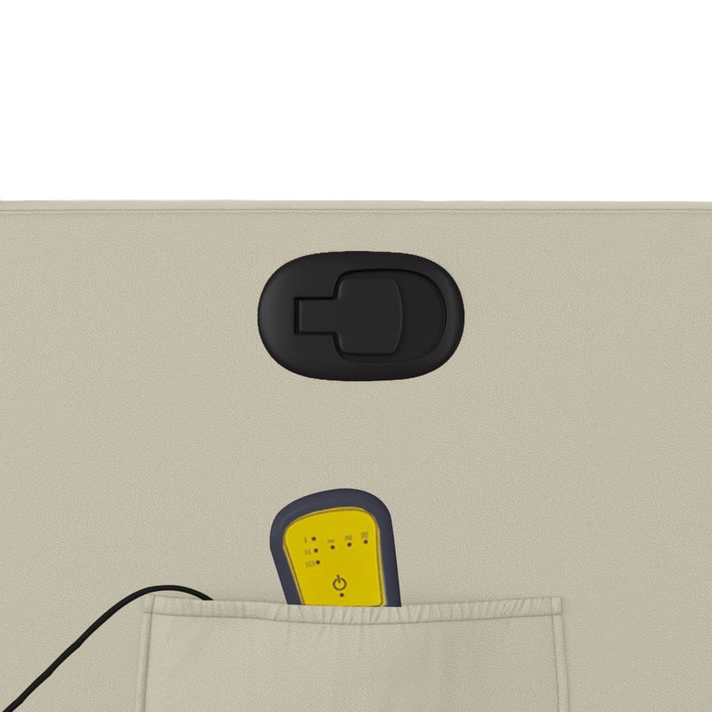 Asseyez-vous et détendez-vous dans ce fauteuil inclinable de massage très confortable ! Fonction d'inclinaison manuelle : ce fauteuil inclinable est doté d'une poignée du côté droit. Vous pouvez régler manuellement le repose-pieds et le dossier dans n'importe quelle position selon votre confort en tirant simplement sur la poignée. Cette fonction permet une inclinaison maximale de 135 degrés. De plus, le dossier peut revenir rapidement à sa position d'origine en tirant simplement sur la poignée.Fonction de vibration : les 6 points de massage vous permettent de faire l'expérience d'un massage mieux ciblé. De plus, la télécommande incluse vous permet de choisir différents programmes de massage. La fonction de massage est alimentée par le connecteur USB, mais la source d'alimentation USB 5V certifiée n'est pas incluse.Expérience de siège confortable : le siège, le dossier et les larges accoudoirs rembourrés épais recouverts de similicuir procurent une sensation confortable, vous faisant vous sentir enlacé lorsque vous êtes assis. Le similicuir est un matériau très résistant. Il est résistant aux taches, ce qui le rend facile à nettoyer avec un chiffon humide. La surface lisse donne également un aspect luxueux et la beauté du cuir véritable.Poche latérale pratique : ce fauteuil est doté d'une poche latérale pour ranger votre télécommande ou garder vos objets essentiels à portée de main.Cadre solide et stable : le cadre en bois et en métal offre une structure solide et une grande stabilité. Ce fauteuil inclinable est confortable et durable.