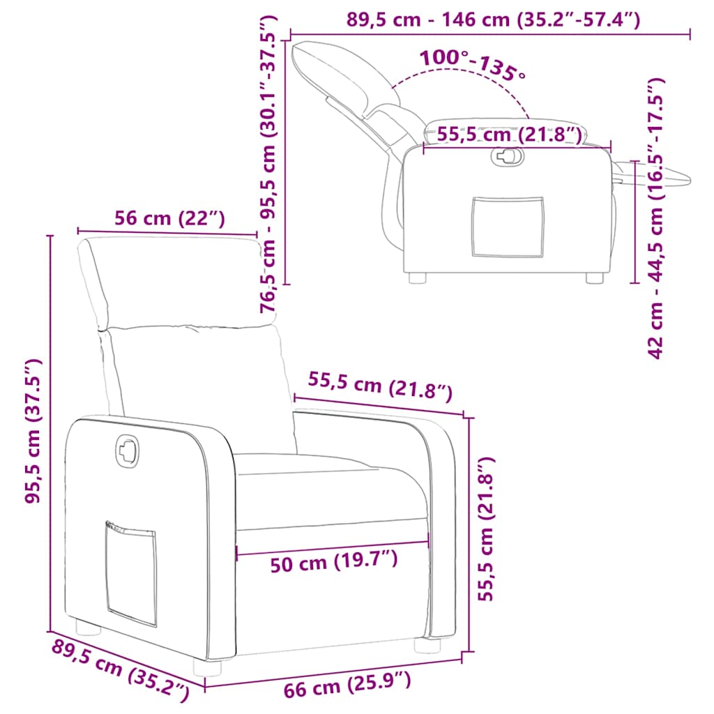 Asseyez-vous et détendez-vous dans ce fauteuil inclinable très confortable ! Fonction d'inclinaison manuelle : ce fauteuil inclinable est doté d'une poignée du côté droit. Vous pouvez régler manuellement le repose-pieds et le dossier dans n'importe quelle position selon votre confort en tirant simplement sur la poignée. Cette fonction permet une inclinaison maximale de 135 degrés. De plus, le dossier peut revenir rapidement à sa position d'origine en tirant simplement sur la poignée.Expérience de siège confortable : le siège, le dossier et les larges accoudoirs rembourrés épais recouverts de similicuir procurent une sensation confortable, vous faisant vous sentir enlacé lorsque vous êtes assis. Le similicuir est un matériau très résistant. Il est résistant aux taches, ce qui le rend facile à nettoyer avec un chiffon humide. La surface lisse donne également un aspect luxueux et la beauté du cuir véritable.Poche latérale pratique : ce fauteuil est doté d'une poche latérale pour vous permettre de garder vos objets essentiels à portée de main.Cadre solide et stable : le cadre en bois et en métal offre une structure solide et une grande stabilité. Ce fauteuil inclinable est confortable et durable.