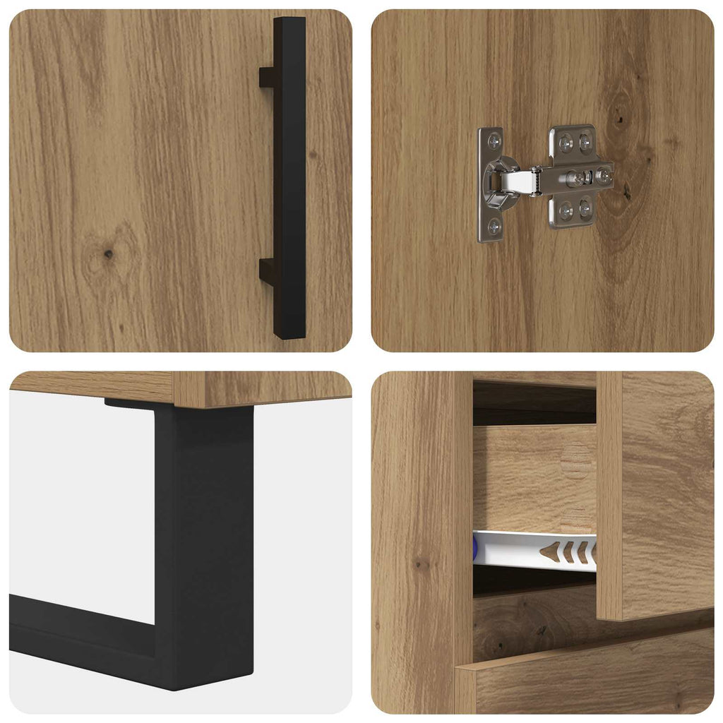 Le buffet moderne est une belle solution à la fois chic et pratique pour ta salle à manger ou ton salon. Sa forme rectangulaire et son style minimaliste, avec des lignes épurées, en font un ajout élégant à n'importe quel endroit. En bois d'ingénierie, ce buffet ne propose pas seulement plein de rangement, il s'harmonise également avec divers styles de déco. Parfait pour ceux qui aiment une esthétique moderne tout en étant fonctionnel, il fait office de pièce maîtresse et de rangement en même temps. Matériau en bois d'ingénierie Ce buffet est fabriqué en bois d'ingénierie, connu pour sa robustesse et sa résistance au temps. Le matériau donne un look moderne et chic, parfait pour les styles minimalistes, tout en offrant une base solide pour ranger tout un tas de choses. Avec sa construction durable, il résiste à un usage quotidien tout en restant élégant. Étagères pratiques Avec ses étagères en bois d'ingénierie, ce buffet te donne plein d'options pour afficher ou ranger tes affaires. Son design simple permet d'accueillir divers objets, des assiettes aux éléments déco. Ça garde la pièce organisée tout en pétant le style. Montage facile Pensé pour un assemblage rapide, il suffit de deux personnes et d'un tournevis. Ça rend le montage simple, sans nécessité d'outils spéciaux, donc tu pourras profiter de ton nouveau meuble peu après son arrivée. Pieds stylés Le buffet repose sur des pieds en métal noir, conçus avec une forme carrée. Ces pieds accentuent le look moderne tout en garantissant la stabilité sur différents sols. Panneau arrière soigné Avec un panneau arrière en bois d'ingénierie bien fini, le buffet a une belle apparence de tous les côtés. Ça souligne son rôle à la fois de pièce maîtresse et de solution de rangement, le rendant parfait pour les espaces ouverts.