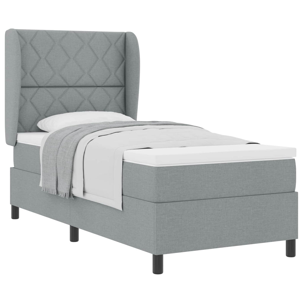 Lit à ressorts avec matelas Gris clair 100 x 200 cm tissu