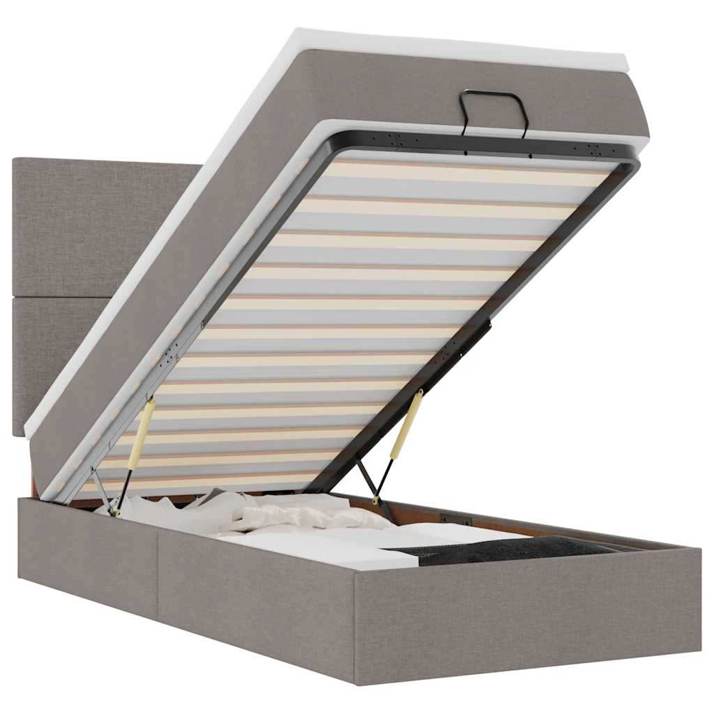 Lit ottoman avec matelas taupe 100x200 cm tissu