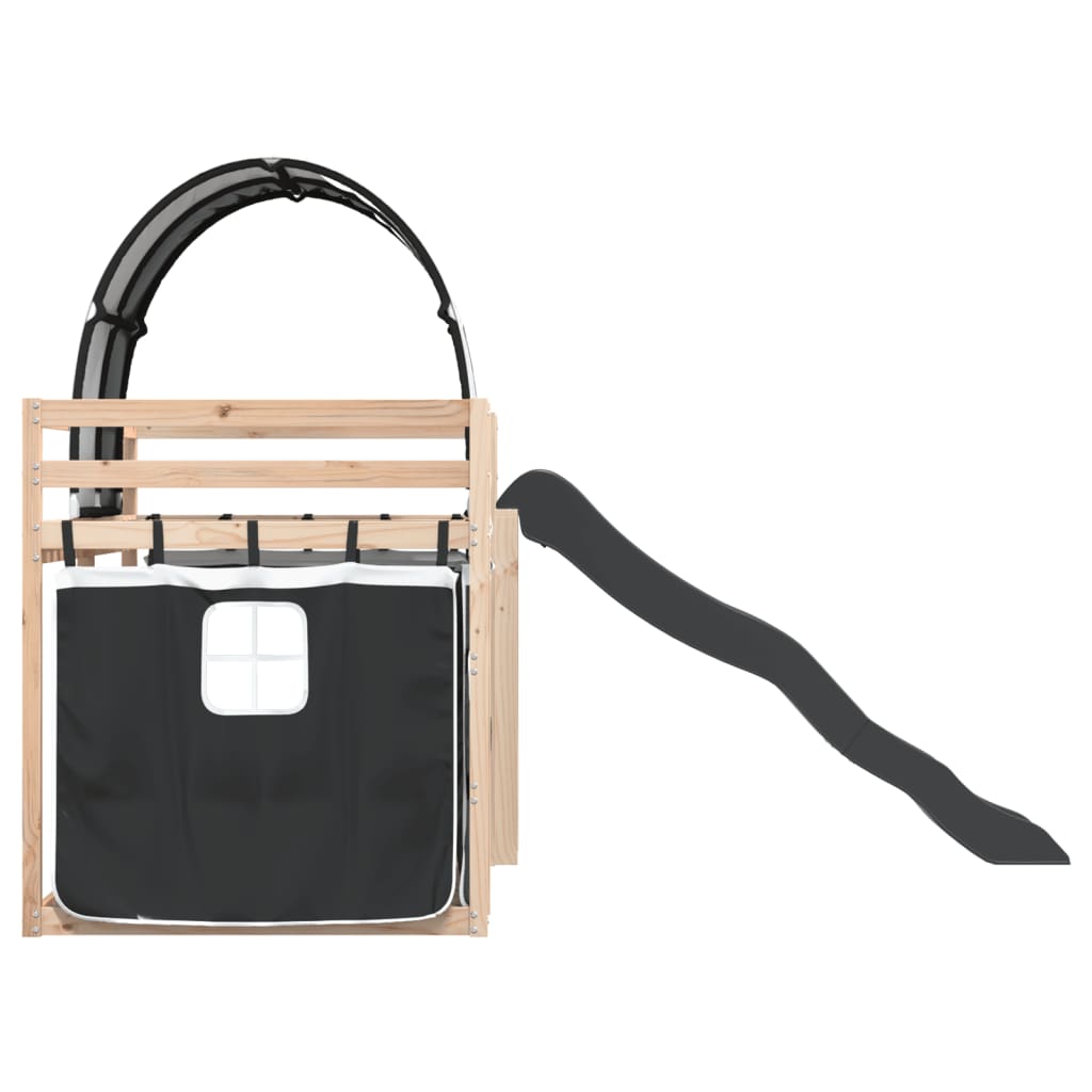 Ce lit superposé en bois est élégant et fonctionnel, ce qui en fait un supplément parfait à toute pièce dont l'espace est limité. Bois de pin massif : ce lit superposé est fabriqué en bois de pin massif pour plus de stabilité et de durabilité. Le bois de pin a un grain droit et les nœuds donnent au matériau son aspect rustique caractéristique.Très amusant : vous pouvez combiner les rideaux avec le lit superposé bas pour créer la base secrète de votre enfant, ce qui permet de s’amuser à l’heure du coucher et d’ajouter un point d'intérêt à la chambre à coucher !Barrières de sécurité : le lit supérieur est équipé de garde-corps de sécurité sur les 4 côtés, afin que votre enfant puisse dormir sans craindre de tomber.Échelle et toboggan pratiques : ce lit superposé est doté d'un toboggan amusant qui apporte de la joie et transforme leur chambre en une aire de jeux intérieure. La combinaison d'une échelle d'escalade et d'un toboggan rend l'heure du coucher plus vivante et plus intéressante pour les enfants.Lattes robustes : les lattes de contreplaqué assurent une bonne répartition du poids, garantissant que le matelas reste en place à chaque torsion de votre corps pendant le sommeil. Bon à savoir :Un matelas n'est pas inclus avec ce lit. Nous offrons une sélection variée de matelas. Vous pouvez consulter notre boutique pour trouver un matelas assorti. Attention :Pour éviter qu'il ne bascule, ce produit doit être utilisé avec le dispositif de fixation murale fourni.