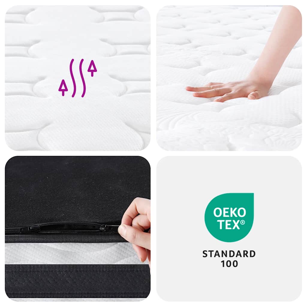 Ce matelas à ressorts bonnell est conçu pour vous apporter une sensation agréable et une expérience de sommeil confortable à la maison. Durabilité et longévité : le tissu présente un aspect simple et épuré tout en restant respirant, doux pour la peau et durable. Excellent soutien : le système de ressorts bonnell se compose de ressorts d'acier en forme de sablier interconnectés, fermes et stables, qui constituent une base de soutien durable pour le matelas. Confort accru : le matelas à ressorts est conçu avec plusieurs couches, dont une couche de mousse, une couche de matelas isolant et une couche de ressorts. Cette combinaison offre une sensation de douceur et de confort pour toutes les positions de sommeil. En outre, le matelas absorbe efficacement les bruits et les vibrations provoqués par les mouvements de rotation, garantissant ainsi un sommeil paisible et non perturbé. Entretien facile : le matelas en mousse à ressorts est doté d'une longue fermeture éclair dans le bas, ce qui permet de retirer facilement la housse pour la nettoyer. Bon à savoir :Ce matelas est composé de deux noyaux de matelas individuels, combinés pour former un matelas unique et unifié.La housse du matelas est lavable jusqu'à 40 °C. Veillez à ne pas la laver fréquemment. Pour votre confort, le matelas est compressé et roulé dans une boîte, et vous pouvez facilement le déplacer et l'installer dans votre pièce.