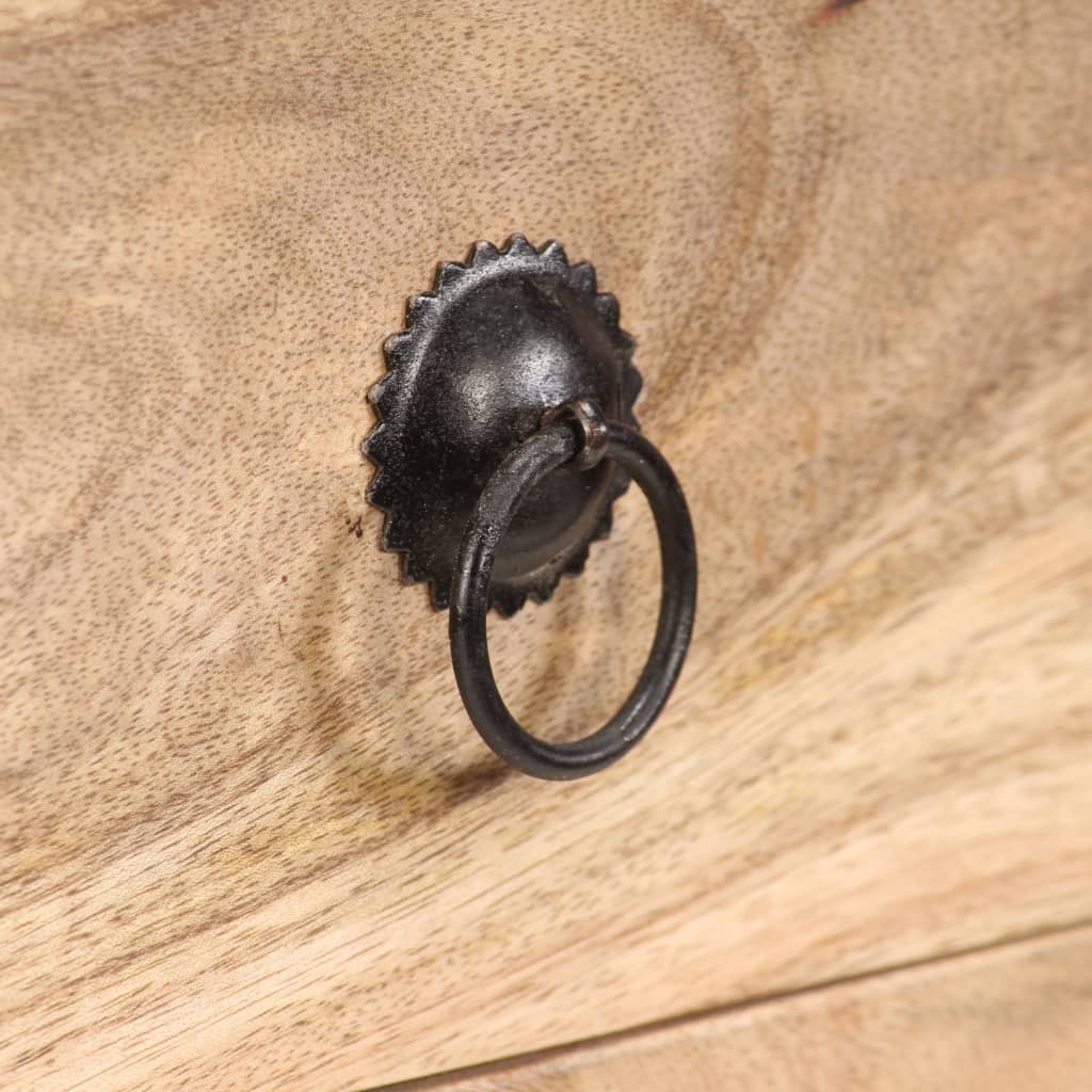 Cette table d'appoint rustique sera un supplément pratique et très décoratif à votre entrée, salon ou salle de séjour. Elle peut également être utilisée comme table console ou table auxiliaire et dispose d'un dessus de table avec un plateau très pratique. La table d'appoint est faite à la main en bois de manguier qui est solide, stable, durable et mangifique, et l'artisanat contribue à son style rétro spectaculaire. Chaque étape du processus est réalisée avec le plus grand soin, que ce soit le polissage, la peinture ou le laquage. Le travail artisanal et les mangifiques grains de bois rendent chaque meuble unique et légèrement différent des autres. Le dessus de table peut également servir de grand plateau de service qui peut être facilement enlevé pour une utilisation séparée en cas de besoin, et offre suffisamment d'espace pour des boissons ou des objets décoratifs comme des paniers de fruits ou des vases. Conçue avec deux tiroirs, la table d'appoint garde vos petits objets bien rangés et à portée de main. Les pieds en forme de X contribuent à sa robustesse ainsi qu'à son superbe style rétro. L'assemblage est facile. Remarque importante : les couleurs et les grains peuvent varier d'une pièce à l'autre, rendant chacune de nos tables consoles unique ; la livraison est aléatoire.