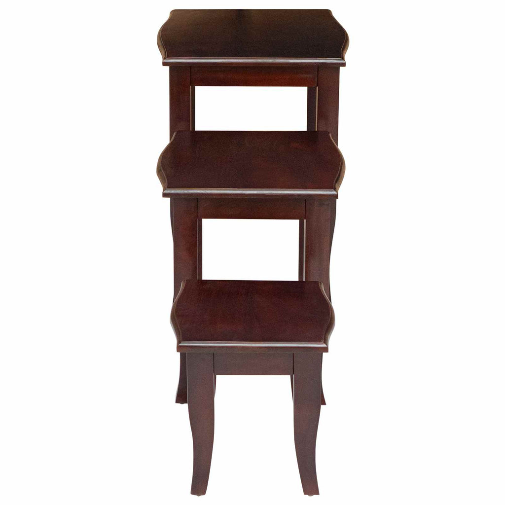 Cet ensemble de tables gigognes classique, avec son superbe design, allie fonctionnalité et style. Conçues pour être l'ajout parfait à votre chez-vous, elles sont pratiques dans des espaces réduits comme les salons ou les chambres. Chaque table s'imbrique facilement sous la plus grande, parfait pour les endroits où il faut faire attention au manque d'espace. Avec leur design intemporel, elles embellissent votre maison tout en restant discrètes. Le bois d'acajou a une belle couleur chaude qui s'intègre bien dans tous les styles, que ce soit traditionnel ou moderne. Elles sont super pratiques pour poser des boissons, exposer des objets déco ou même pour des sessions de travail improvisées. Artisanat en acajou massif Cet ensemble de tables est fait en bois d'acajou massif de haute qualité, connu pour sa robustesse et ses jolis motifs. La fabrication soignée les rend durables tout en gardant un look chic. Design pratique Ces tables s'emboîtent parfaitement, ce qui les rend flexibles et adaptables. Utilisez-les ensemble pour des soirées plus grandes ou séparément quand l'espace manque. Elles sont super utiles tout en étant élégantes. Facilité d'entretien Leur surface est résistante à l'usure et se nettoie facilement. Un coup de chiffon doux et sec suffit pour les garder en bon état, et elles résistent bien aux produits de nettoyage. Sans montage requis Déballez simplement ces tables et placez-les où vous voulez, sans prise de tête avec des outils. Leur design facilite l'utilisation immédiate dès leur arrivée. Style intemporel Avec un design classique, ces tables s'adaptent parfaitement à tous les styles de déco. Que ce soit dans un salon raffiné ou une chambre cosy, elles ajoutent une touche d'élégance intemporelle à tout espace.
