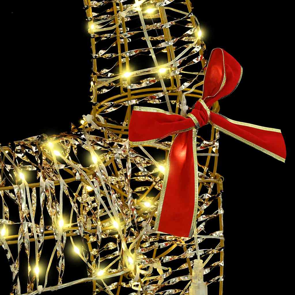 Ce traîneau tiré par un renne est l'ajout idéal à ton décor de fête, mélangeant esthétique moderne et charme festif classique. Pour ceux qui aiment l'esprit de Noël, cette pièce décorative sympa ajoute caractère et chaleur, que ce soit dans un salon, un hall ou un jardin. Avec son mignon renne qui tire un traîneau, elle capture la joie et la magie de la saison des fêtes. Éclairée par des LED blanches chaudes, elle diffuse une lumière douce et agréable, parfaite pour les environnements intérieurs et extérieurs, mêlant sophistication et élégance festive. Conçue pour aller avec différents thèmes, son style moderne et épuré respecte la tradition tout en ajoutant une touche contemporaine. Éclairage de qualité : Avec ses lumières LED, ce traîneau à renne crée une ambiance agréable dans n'importe quel décor. La lumière blanc chaud te donne une atmosphère cosy, chouette pour les intérieurs confortables ou pour booster les décorations extérieures. Commodité USB : Brancher cette figurine décorative est simple grâce à sa connexion USB. Cela te permet de l'installer où tu veux près d'une prise, parfait pour l'utiliser dans plein d'endroits. Design élégant : Son look moderne avec des lignes simples s'adapte facilement à n'importe quelle déco contemporaine. Avec son accent sur la simplicité, il allie traditions festives et style chic. Gain de place : Mesurant 54 x 19 x 120 cm, il se glisse partout sans encombrer l'espace, c'est un super choix si tu veux optimiser ton aménagement. Facilité d'assemblage : Les fans de DIY vont adorer monter cette déco, ajoutant une petite touche personnelle à leur déco de fête. Tout ce qu'il faut est inclus pour un montage facile.