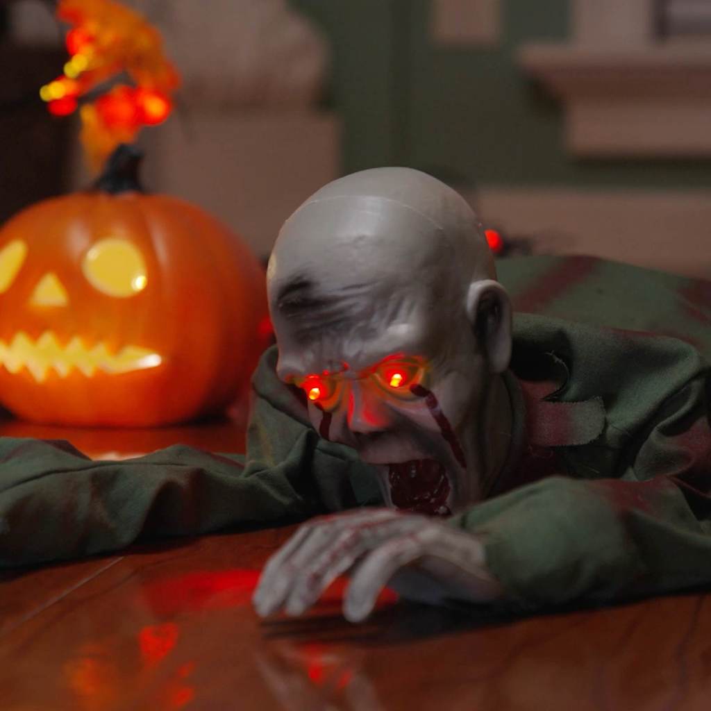 - Activation par capteur à moins de 50 cm, le zombie rampe et émet des bruits effrayants.